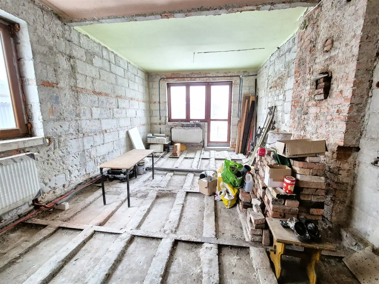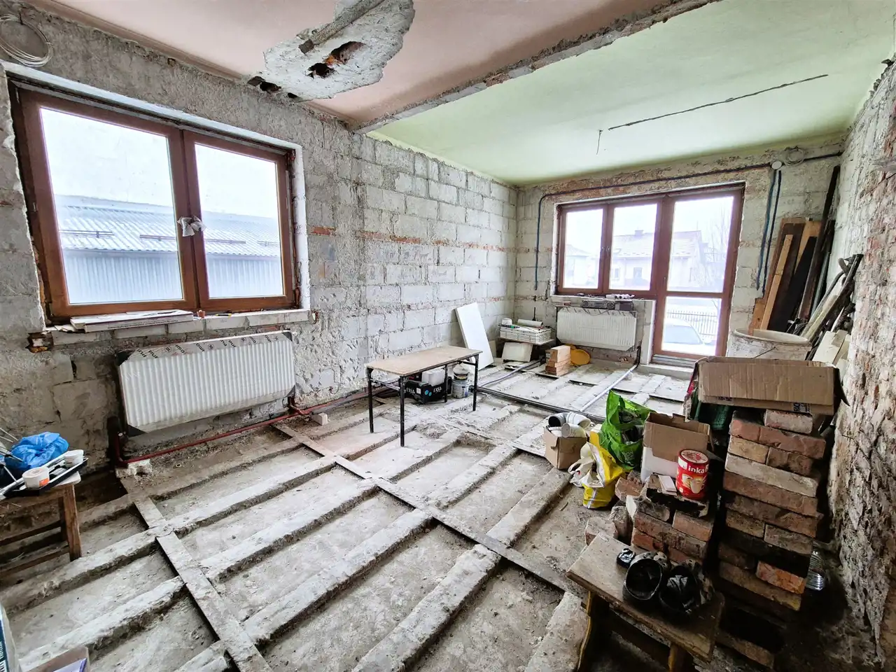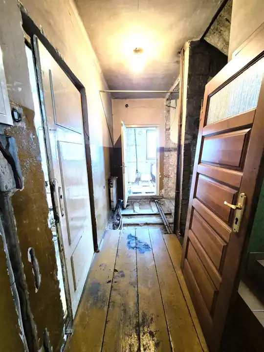 *salon z aneksem kuchennym, sypialnia, łazienka, korytarz, wiatrołap – przestrzeń parteru wymaga gruntownego remontu, co stwarza możliwość pełnej adaptacji według własnych potrzeb i upodobań,