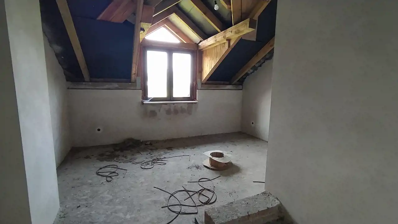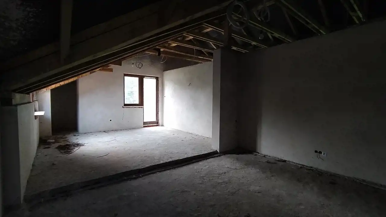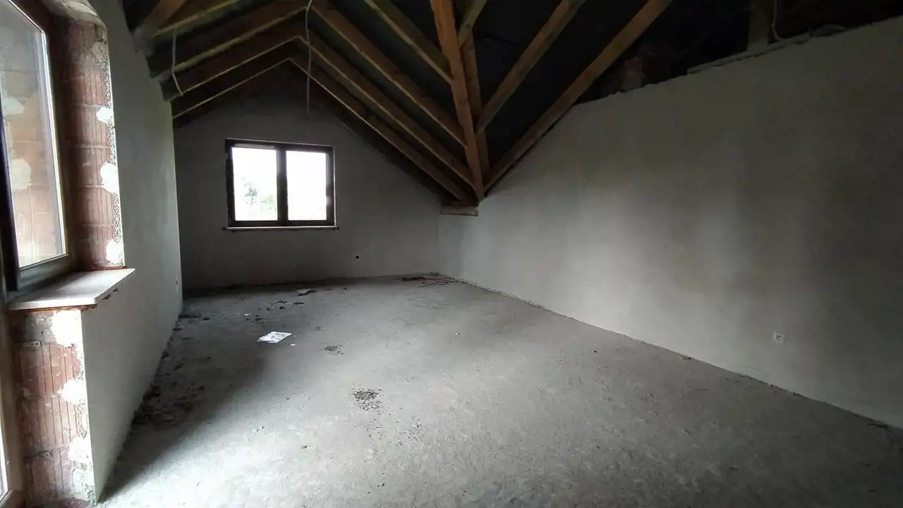 - na część mieszkalną składają się: na parterze - kuchnia, pokój gościnny, łazienka, korytarz, przedsionek, kotłownia , na poddaszu – 5 pokoi, korytarz, łazienka,
