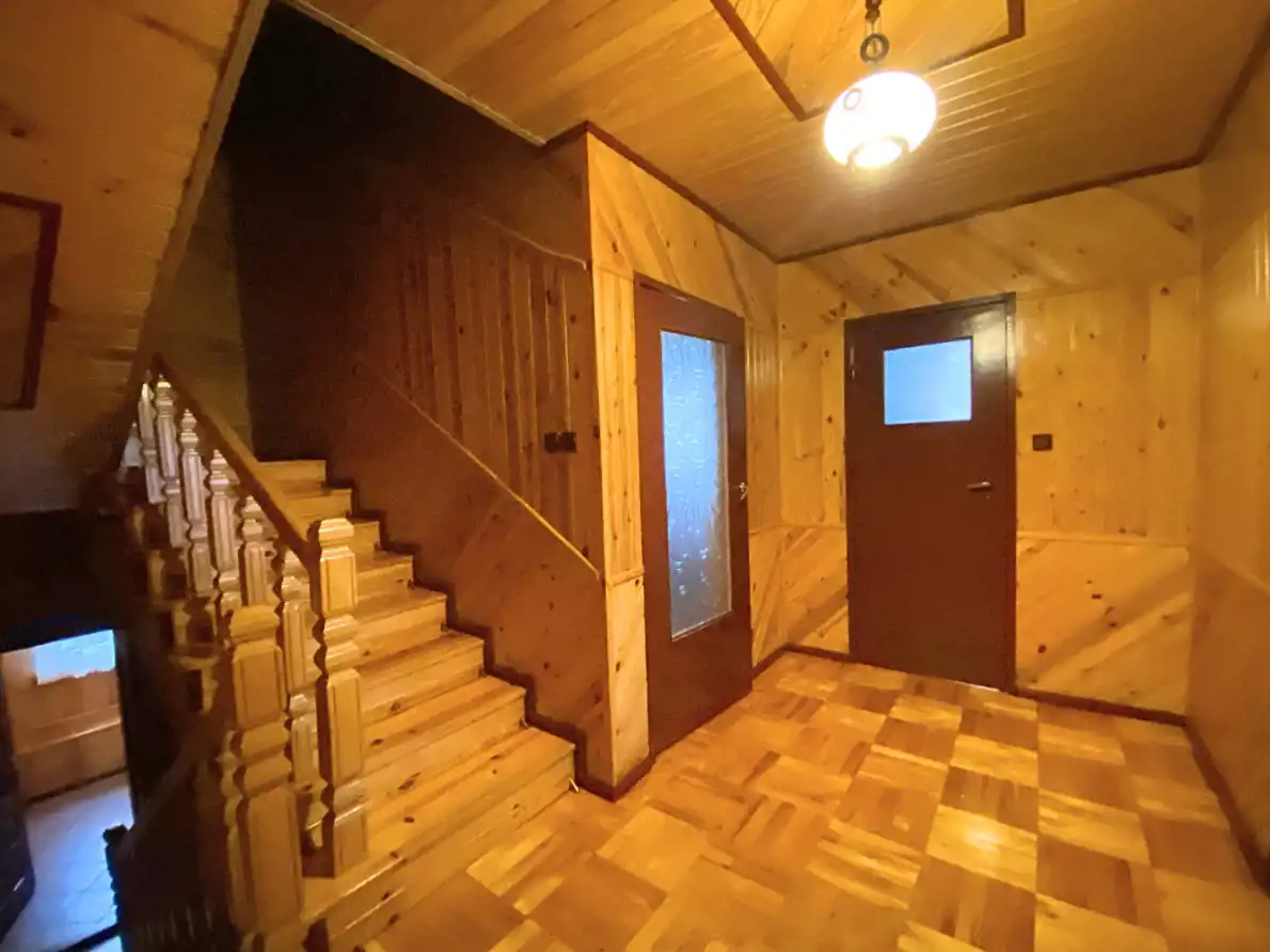- na podłogach panele, parkiet i terakota, schody drewniane,