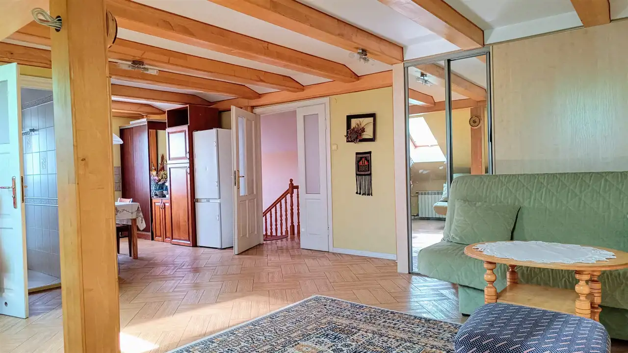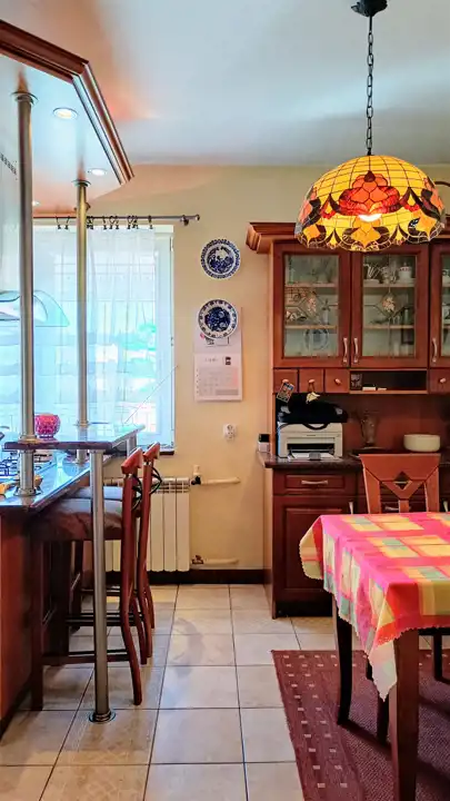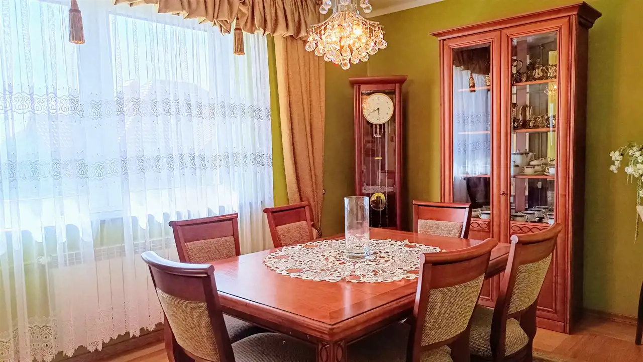 Każde piętro (poza poddaszem) ma osobne, niezależne wejście. Dom sprzedawany z pełnym umeblowaniem, ogrzewany piecem gazowym, z dodatkowymi kolektorami słonecznymi na ciepłą wodę. Dach kryty blachą, okna PCV, dom dobrze ocieplony.