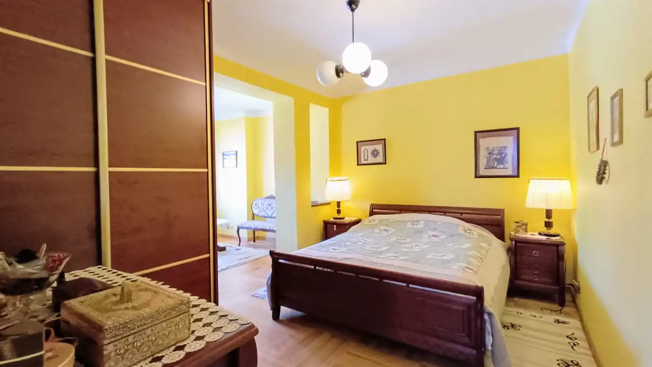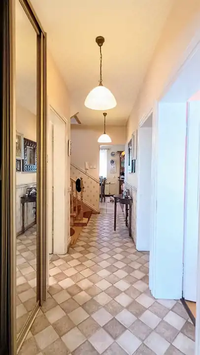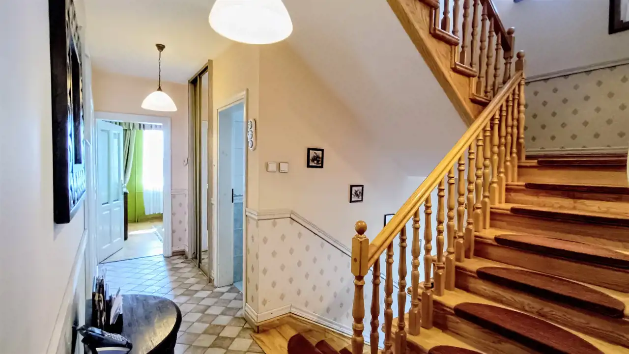 Murowany, solidny, podpiwniczony dom o powierzchni użytkowej ok. 200 m2, z rozbudową w latach 90. Oferuje funkcjonalny rozkład pomieszczeń:
