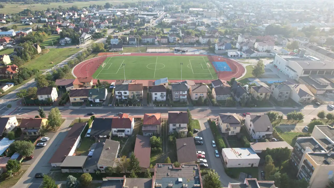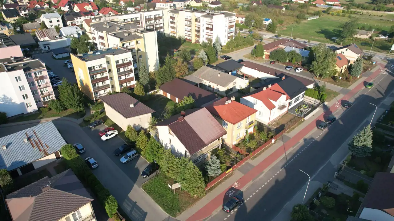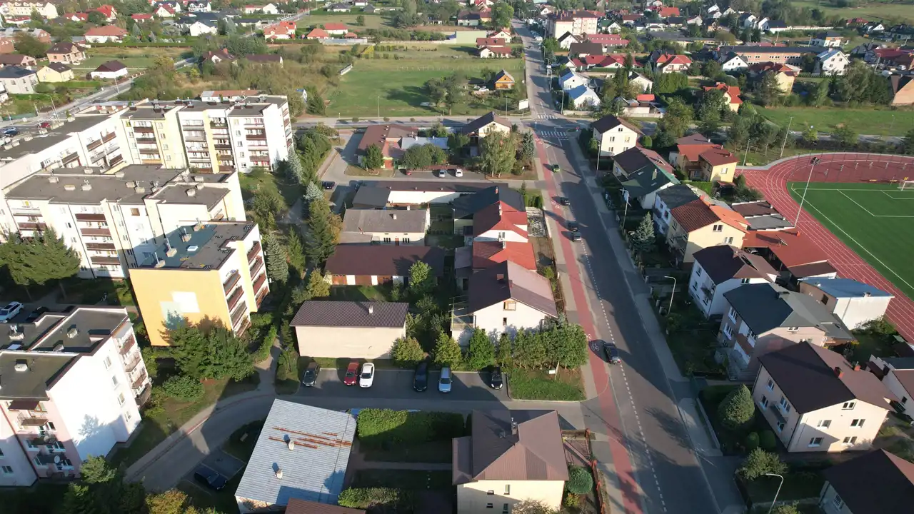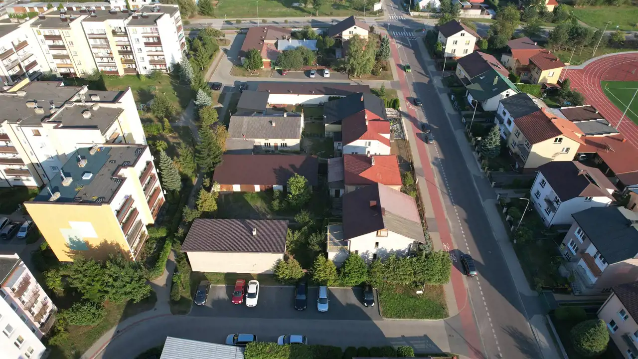 w bliskim sąsiedztwie Liceum Ogólnokształcące, kryta pływalnia, budynki handlowo-usługowe, zabudowa mieszkaniowa jednorodzinna oraz zabudowa mieszkaniowa wielorodzinna,