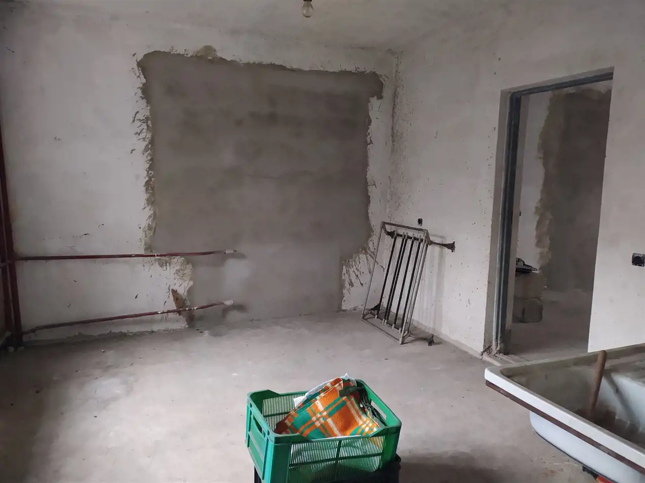 na podłogach posadzki, wykonane tynki, instalacje elektryczne oraz wodno-kanalizacyjne,