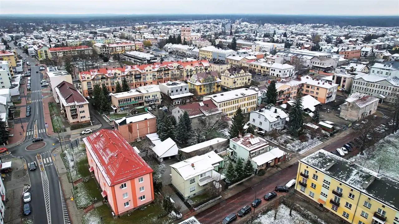 w najbliższym otoczeniu punkty handlowe i usługowe, Sąd Rejonowy, kino oraz zabudowa mieszkaniowa jednorodzinna i wielorodzinna,