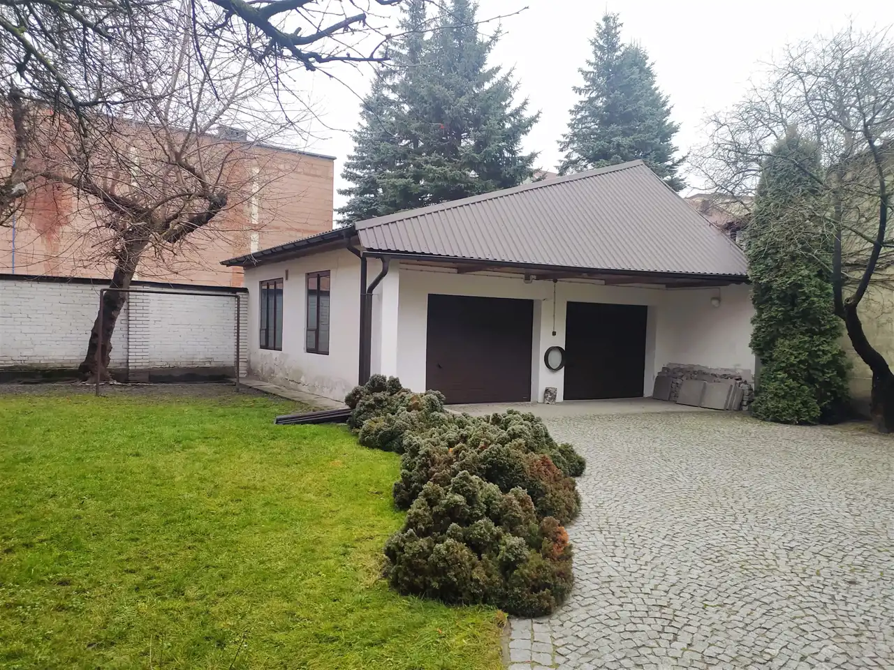 na działce znajduje się również budynek gospodarczo-garażowy o pow. 40 m2 z dwiema bramami garażowymi kryty blachą: