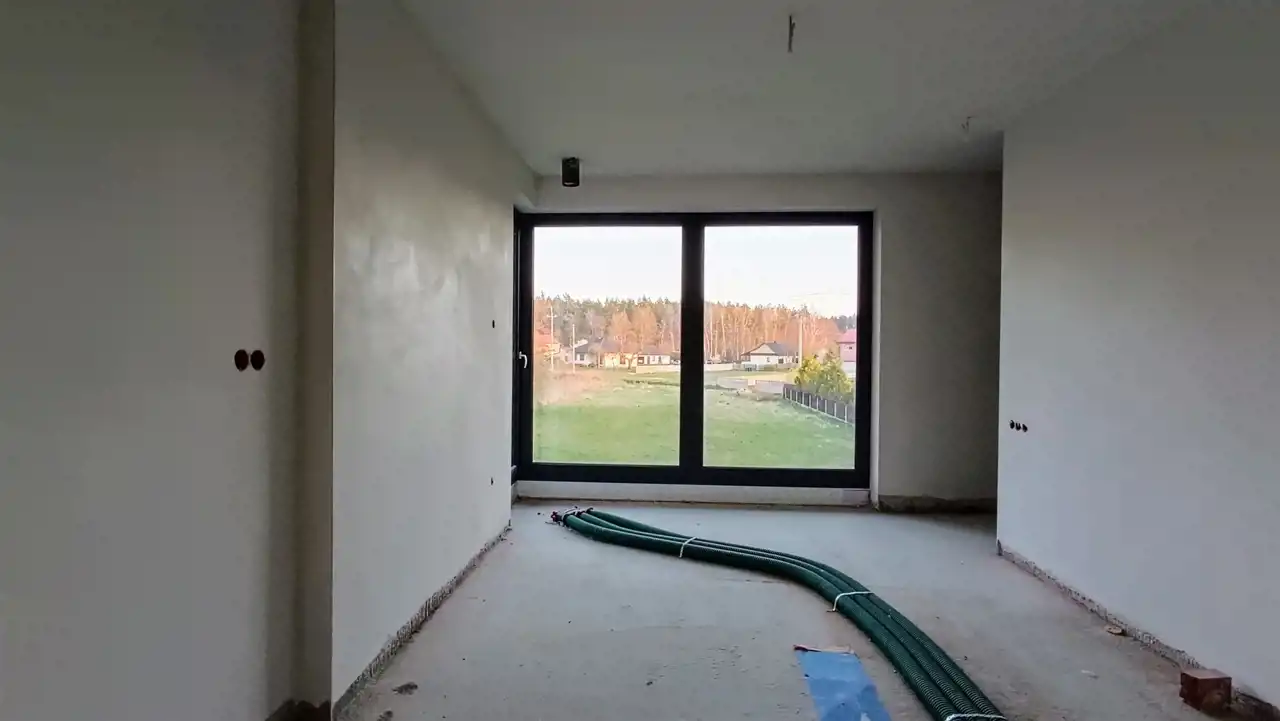 Budowa domu została rozpoczęta w 2022 roku. Cały budynek jest murowany, a elewacja została docieplona, co przekłada się na oszczędność energii. Wszystkie pomieszczenia są doskonale doświetlone dzięki dużym, energooszczędnym 3 komorowym oknom.