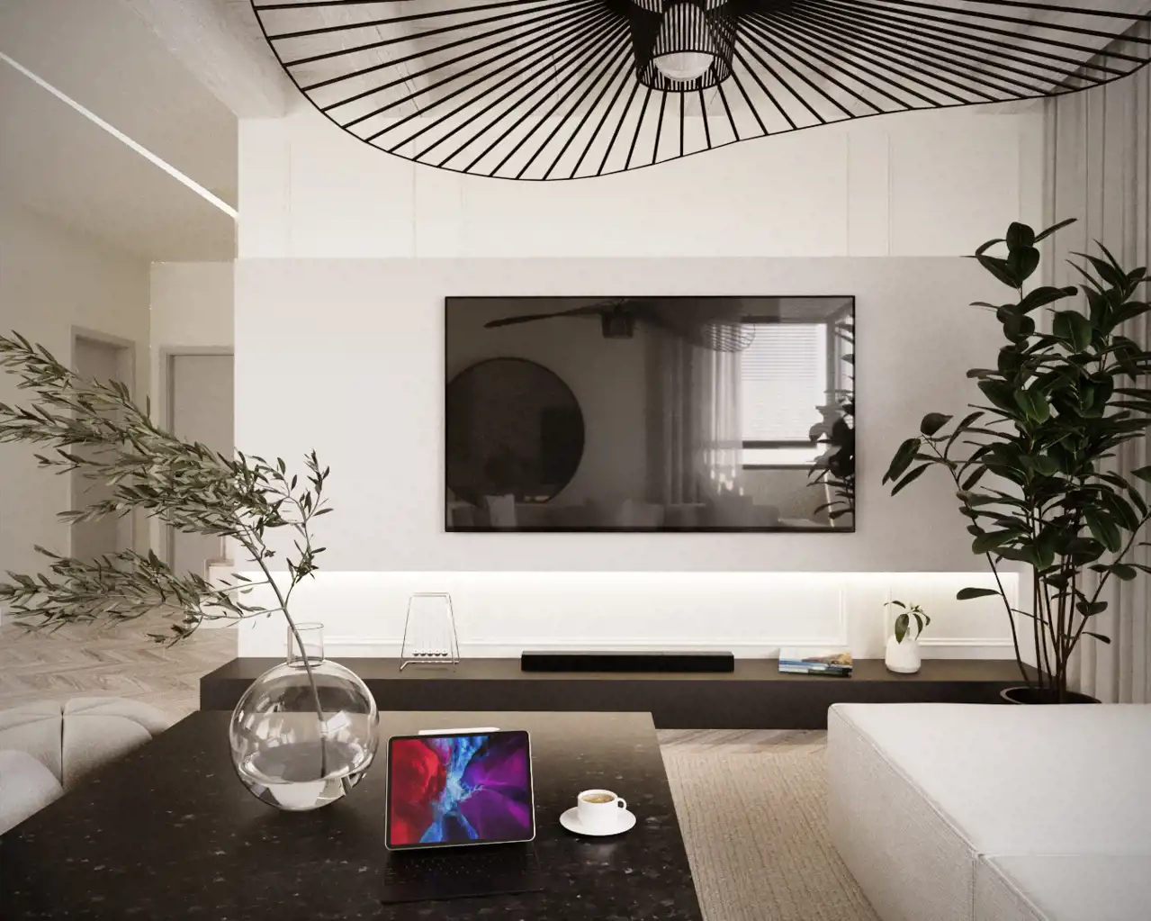 - salon z aneksem kuchennym o łącznej powierzchni 56 m2