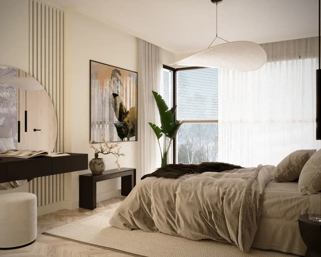 - główna sypialnia o powierzchni 15,5 m2 z garderobą o powierzchni 8 m2