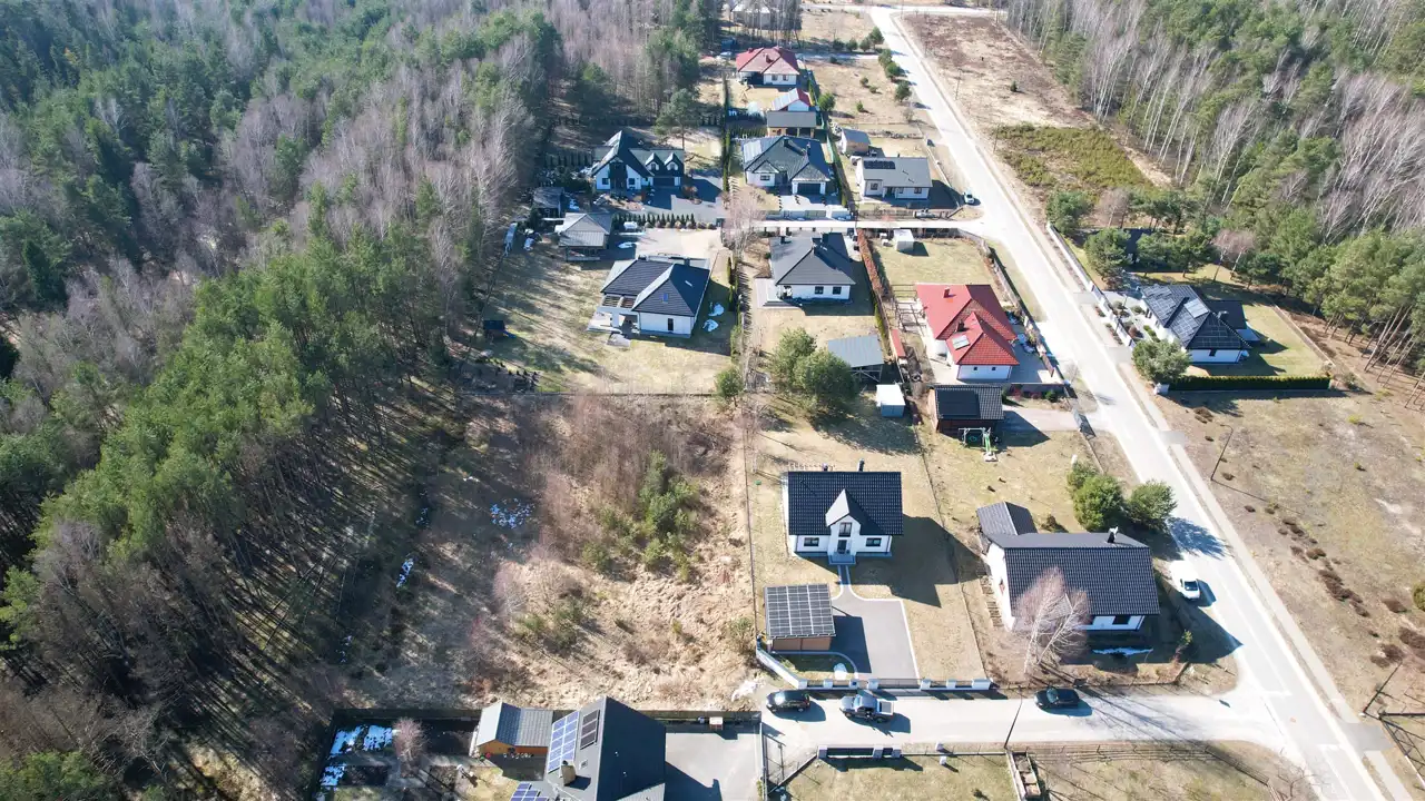 w bezpośrednim otoczeniu znajduje się zabudowa jednorodzinna, a tuż za ogrodzeniem posesji rozciąga się las, który tworzy naturalną barierę prywatności oraz niepowtarzalny klimat – idealny dla miłośników spacerów, wypoczynku na świeżym powietrzu czy porannej kawy wśród śpiewu ptaków.