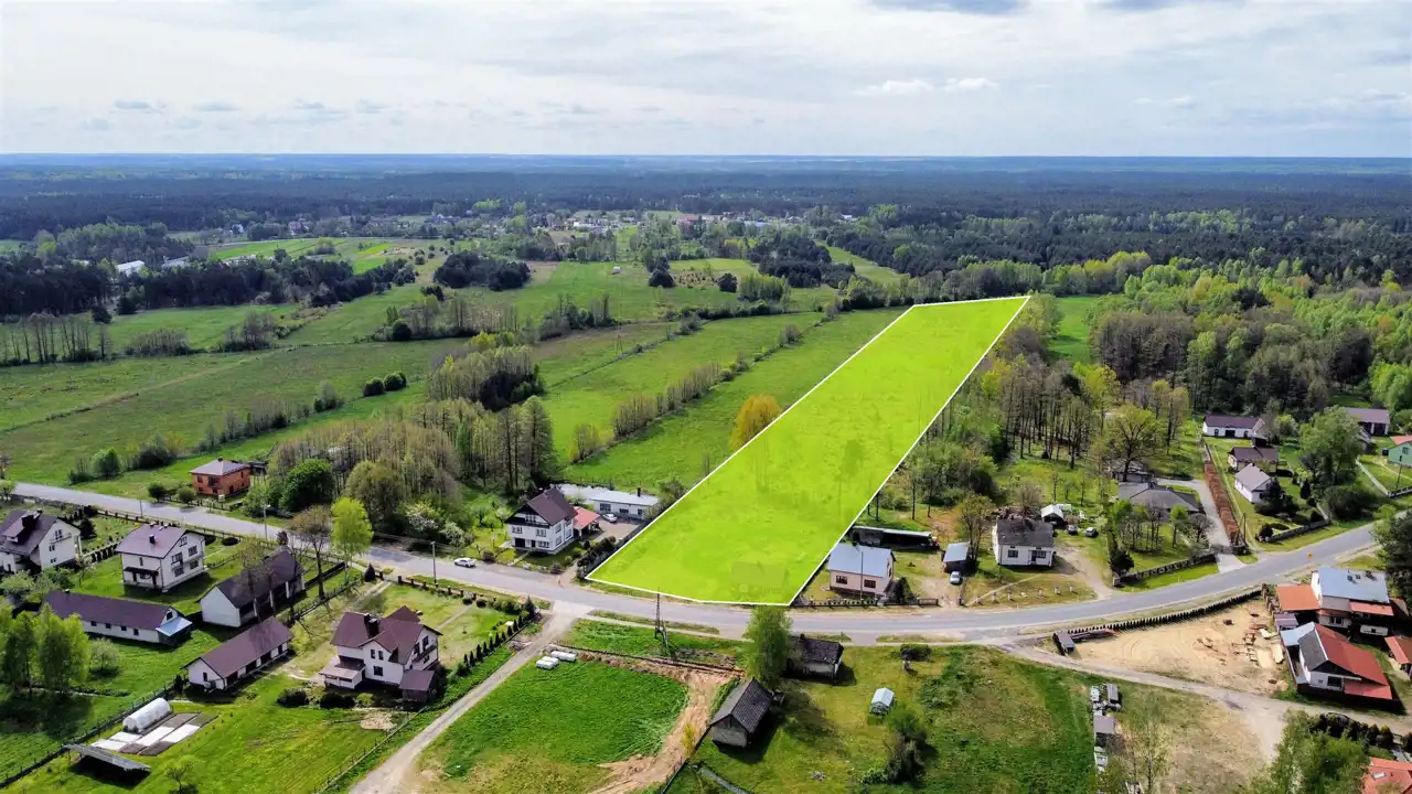 Ważnym atutem tej działki jest jej szerokość - 43 metry, która pozwoli na budowę dużego parterowego budynku oraz budynków gospodarczych, domków pod wynajem lub gospodarstwa agroturystycznego.