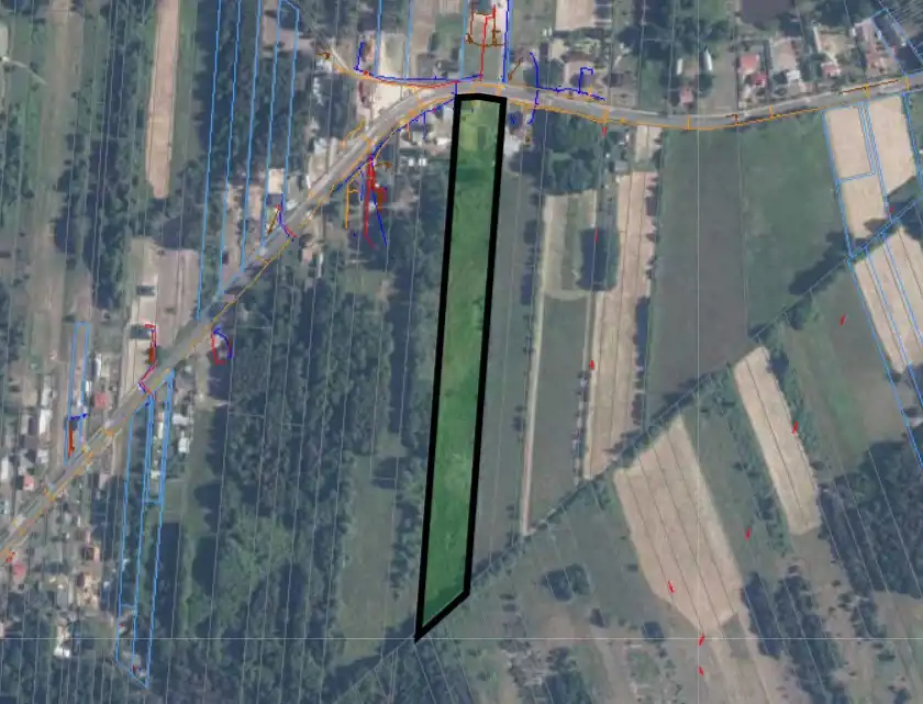 - średnia szerokość działki ok. 43 m, średnia długość działki 497 m