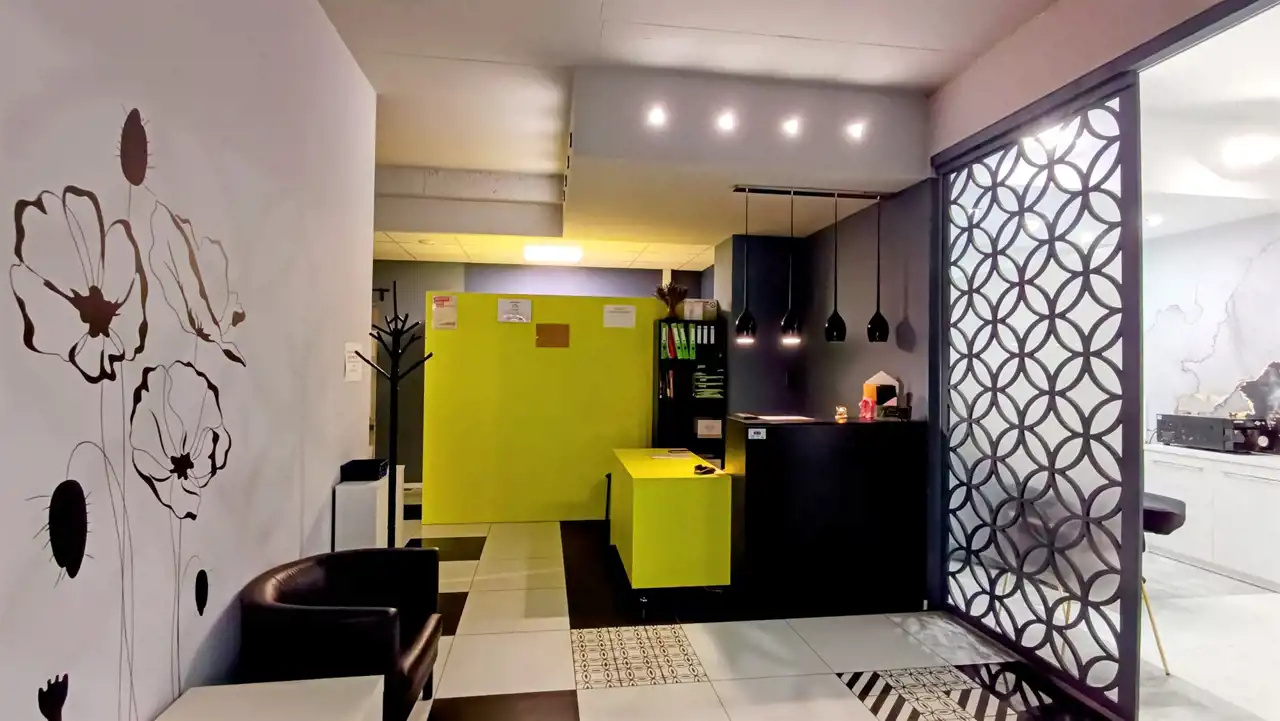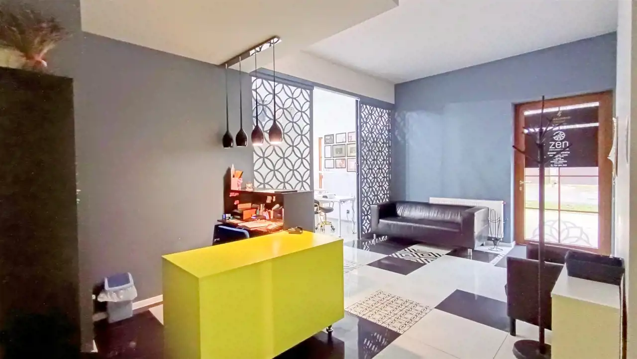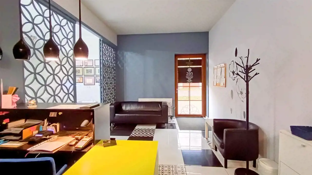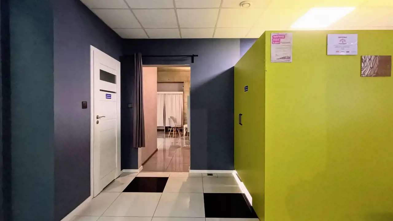 - recepcja połączona z korytarzem prowadzącym do wszystkich pomieszczeń