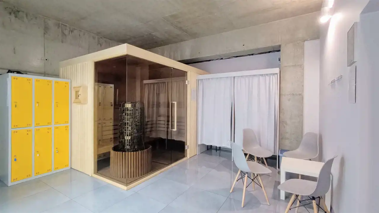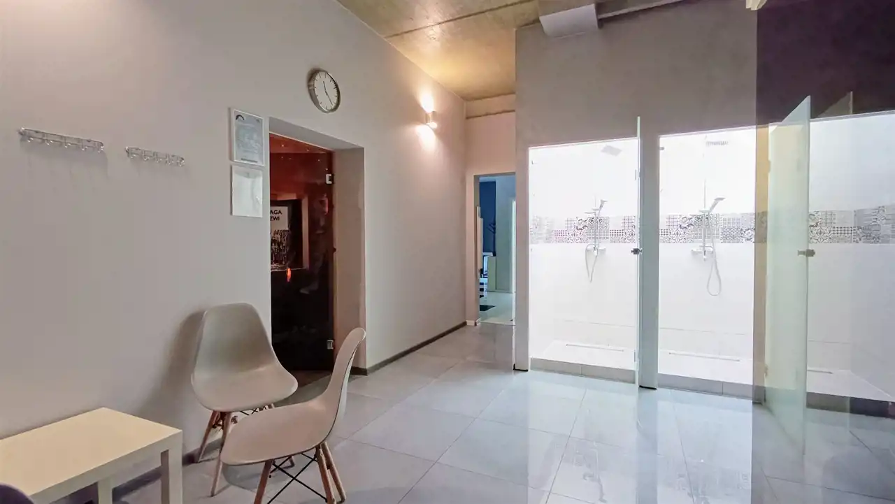 - pomieszczenie z sauną fińską, toaletą prysznicami dla klientów