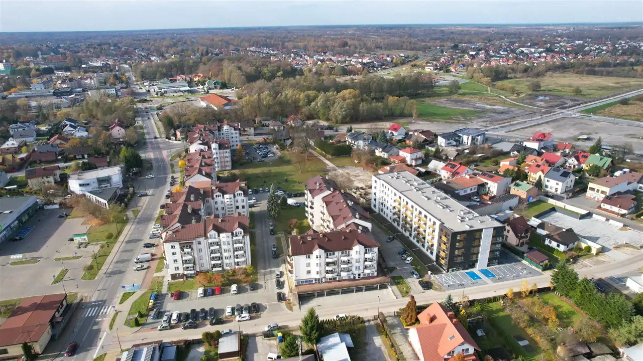 w bezpośrednim sąsiedztwie zabudowa mieszkaniowa jednorodzinna, w pobliżu liczne punkty handlowo-usługowe, urzędy oraz szkoły