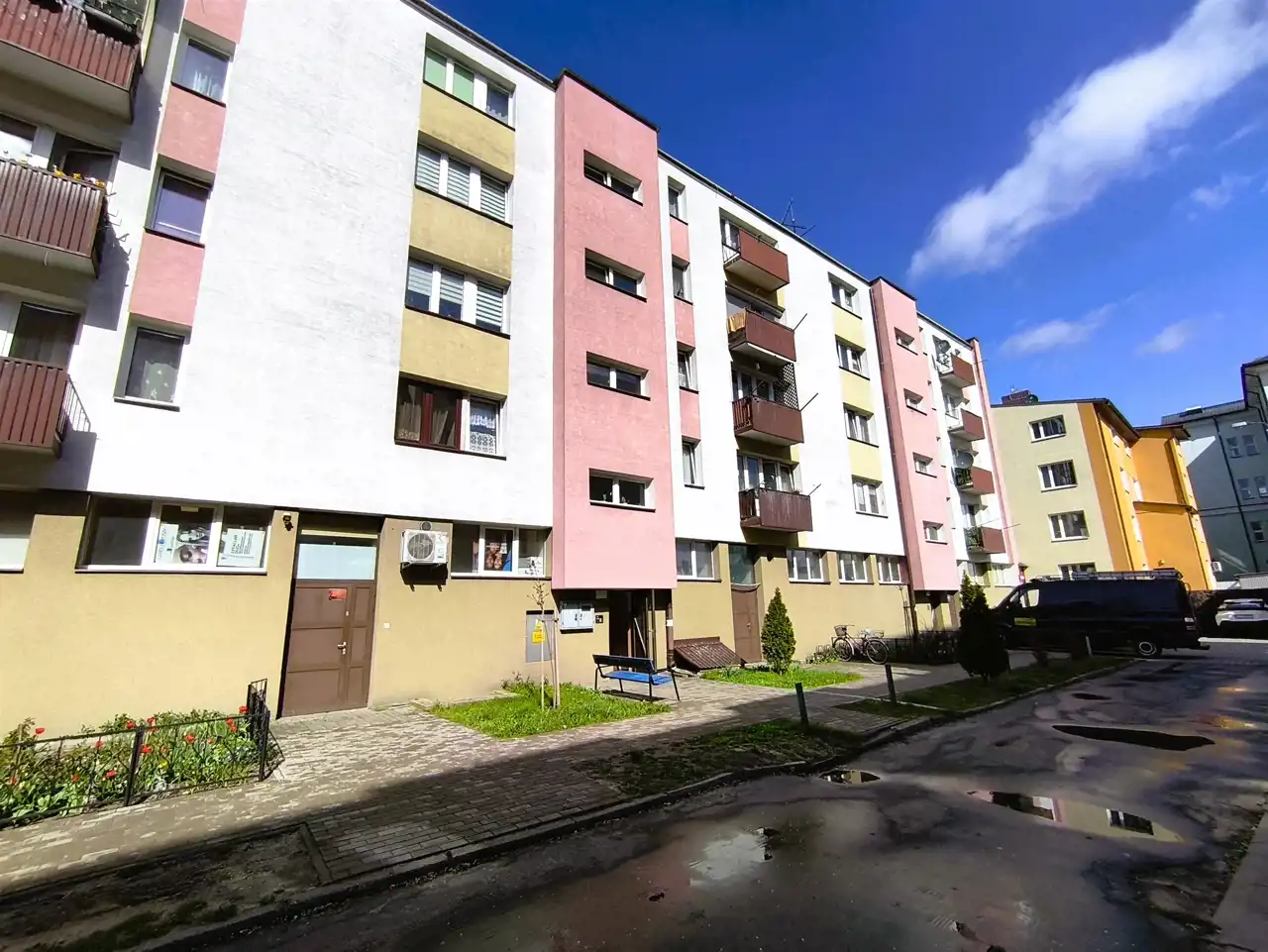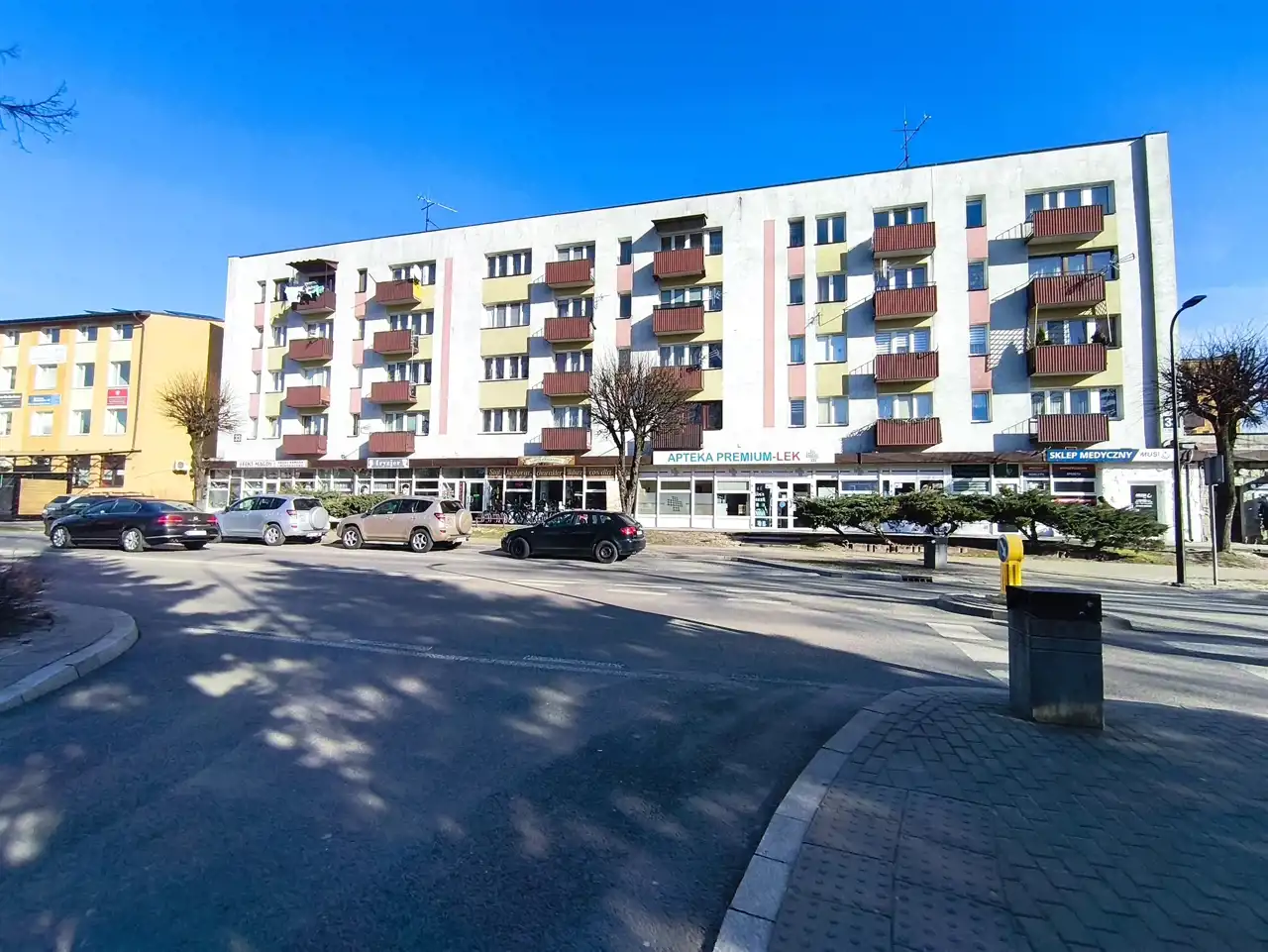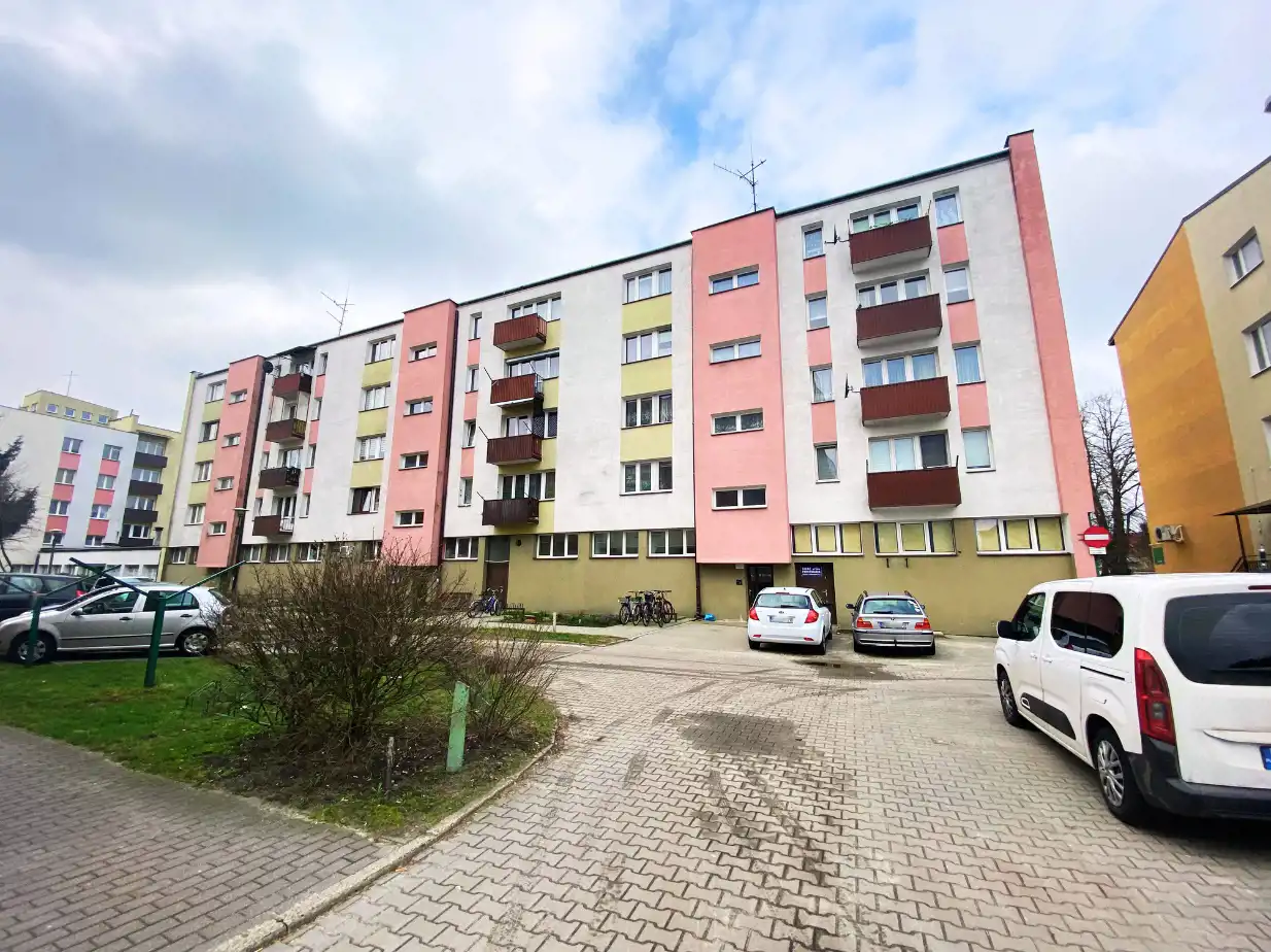 Mieszkanie znajduje się w zadbanym budynku wielorodzinnym, zarządzanym przez spółdzielnię mieszkaniową. Jest to doskonała lokalizacja, która łączy zalety mieszkania w centrum miasta z ciszą i spokojem, zapewniając komfort życia na co dzień. W najbliższym sąsiedztwie znajdują się liczne punkty usługowe i handlowe, kino, przychodnia zdrowia, Urząd Miasta, szkoły, kościół oraz park z placem zabaw dla dzieci – wszystko, co potrzebne do wygodnego funkcjonowania. Dodatkowo, przy budynku znajduje się parking dla mieszkańców. Klatka schodowa jest czysta i zadbana, a domofon zapewnia dodatkowe poczucie bezpieczeństwa.