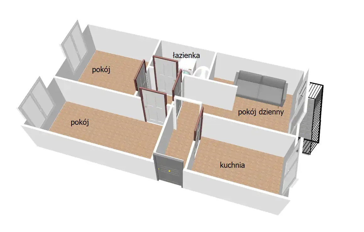 * przedpokój oraz korytarz, które zapewniają wygodny dostęp do wszystkich pomieszczeń,