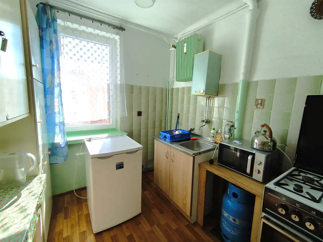 - Media Ogrzewanie: C.O. Z SIECI MIEJSKIEJ; Gaz: własna butla