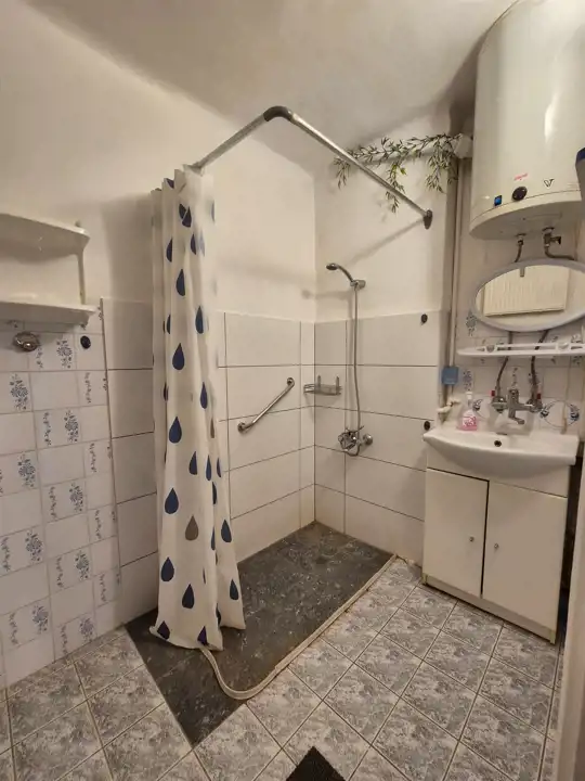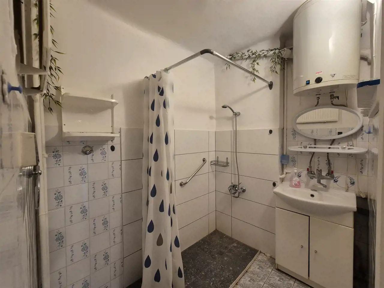 - Media Ogrzewanie: C.O. miejskie; Woda: tak-podgrzewacz elektryczny; Gaz: własna butla