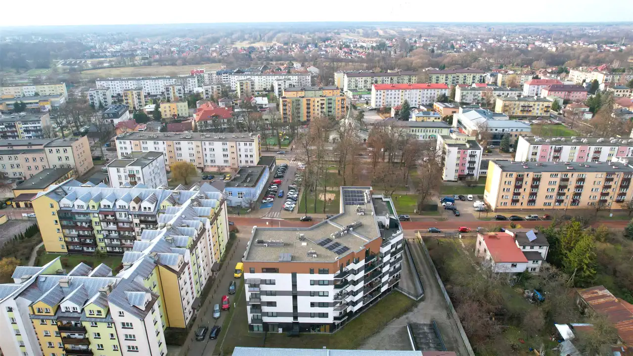 Mieszkanie usytuowane jest w centralnej części miasta, dzięki czemu przyszły właściciel zyskuje komfort życia w miejscu, gdzie wszystko znajduje się na wyciągnięcie ręki. Okolica łączy zalety śródmiejskiej infrastruktury z przyjemnym spokojem, a dodatkowym atutem jest bliskość zadbanego parku oraz skweru — idealnych miejsc na spacer, odpoczynek czy aktywność na świeżym powietrzu. W najbliższej okolicy dostępne są sklepy, apteki, kościół oraz liczne punkty usługowe, a także szkoły i przedszkola.