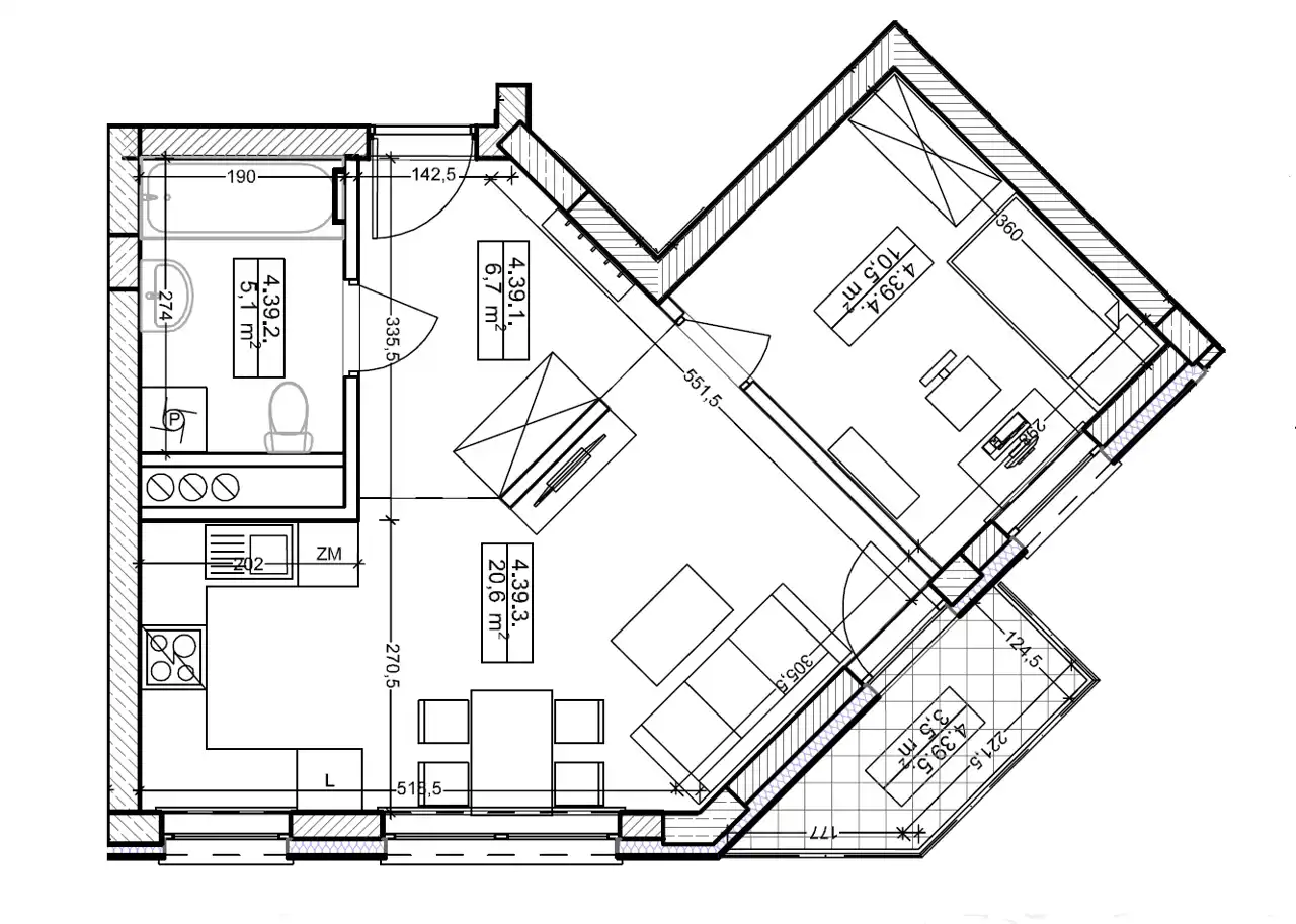 - Charakterystyka mieszkania 42.9 m2, 2 pokoje