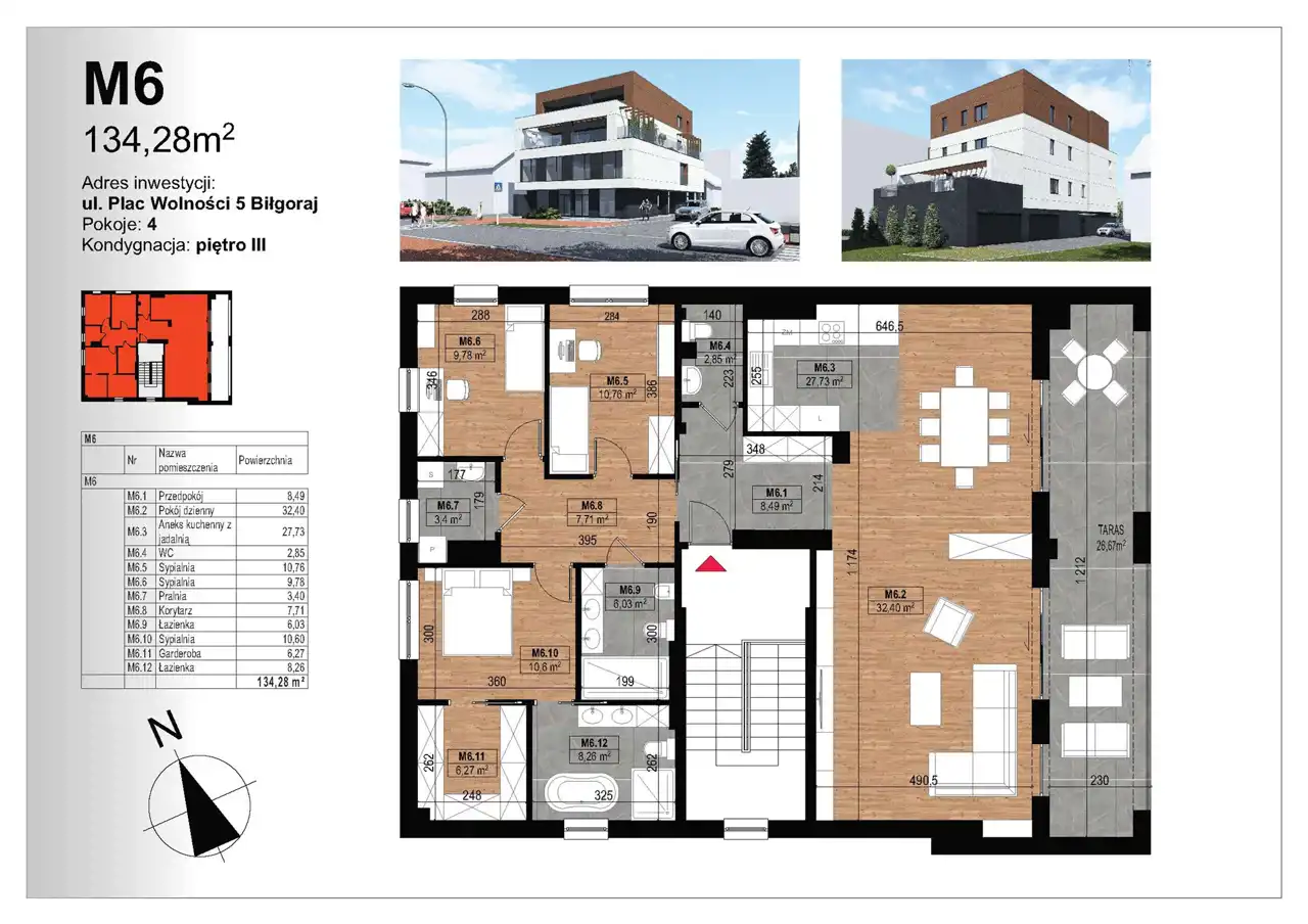 | M 6 | 134,28 | TARAS 26,67 m2 | 1 100 817 zł | 8198 | |