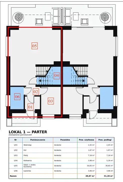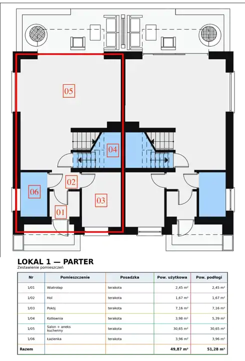 Parter o pow. użytkowej 49,87m2: