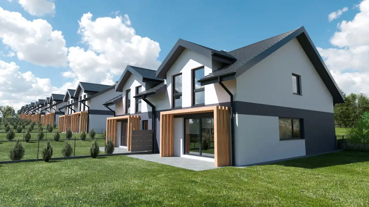 N20 Nieruchomości oferuje do sprzedaży nowoczesny dom w zabudowie bliźniaczej (każdy dom budowany na niezależnych ścianach) na zagospodarowanej i ogrodzonej działce. Dojazd do domów drogą gminną. Inwestycja znajduje się w Trąbkach- 20 min. od Krakowa, a usytuowanie domów wśród zieleni, gwarantuje ciszę i spokój. Zalety inwestycji: bardzo dobry dojazd do Karkowa i Wieliczki; w pobliżu sklepy, szkoła, przedszkola, punkty usługowe; komunikacja miejska i podmiejska. Powierzchnia całkowita domu wynosi 153 m2 (użytkowa 146 m2), 5 lub 6 pokoi z garażem.