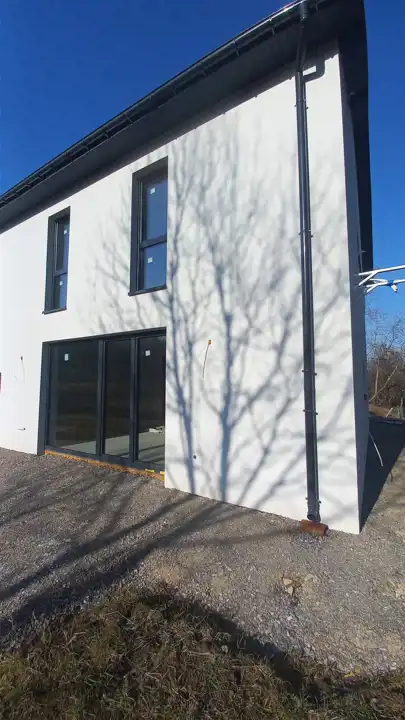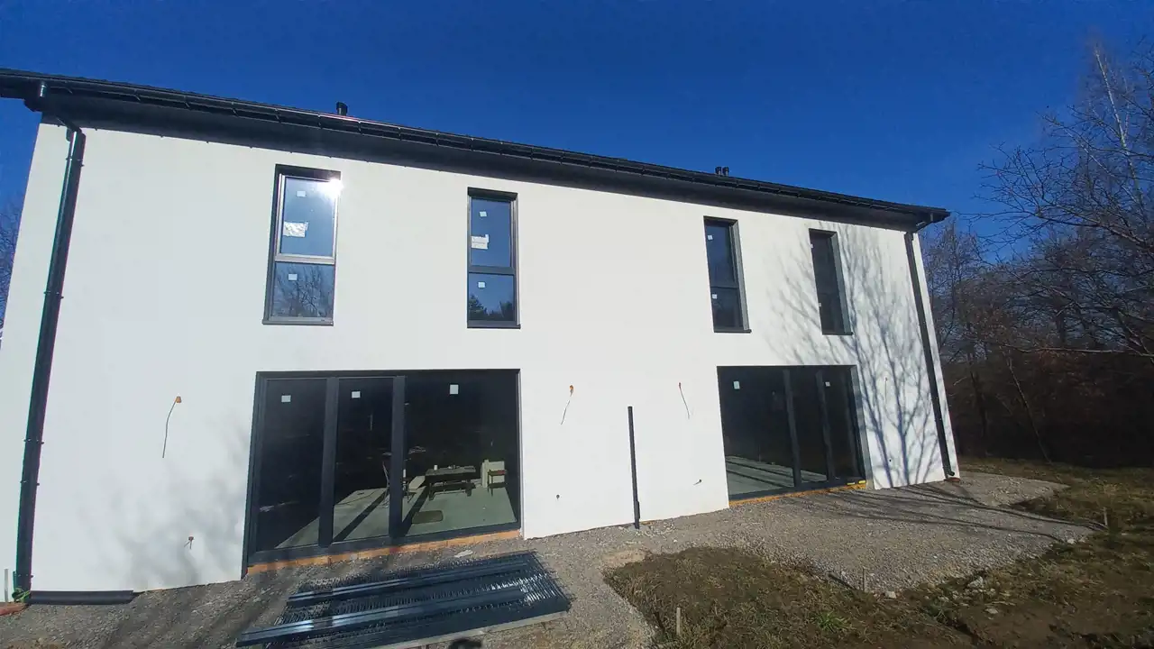 Solidne materiały budowlane (pustak ceramiczny Wienerberger, blachodachówka Murano, ocieplenie styropianem grafitowym i wełną mineralną 35 cm, stolarka PCV trzy-szybowa z ciepłą ramką firmy Veka). Pełny stan deweloperski (tynki, wylewki, instalacje w tym rekuperacja i instalacja pod klimatyzację w salonie).