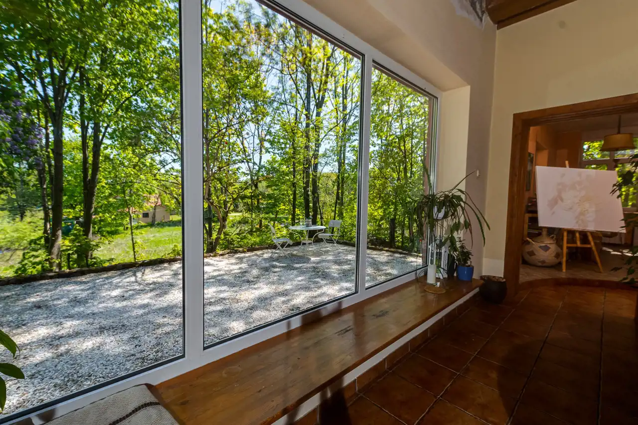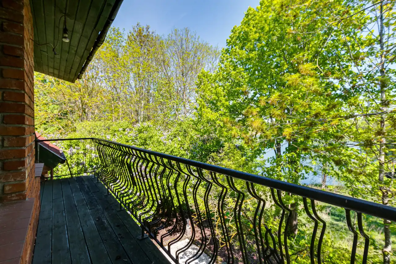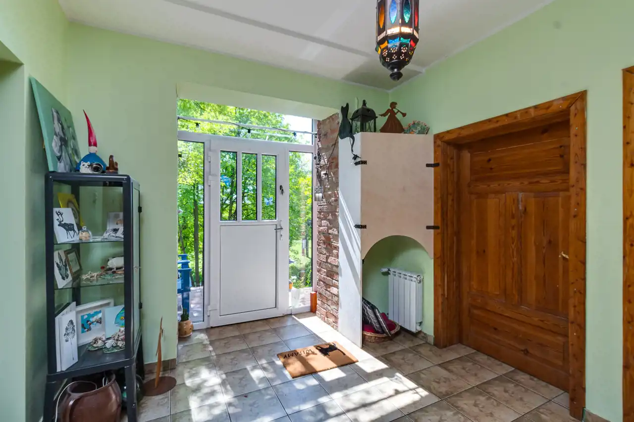 Wnętrze domu zachwyca przestrzenią – wysokie sufity, oryginalne detale architektoniczne, klimatyczna piwniczka idealna na wino lub spiżarnię, a wszystko to otoczone zielenią i ciszą. Na miejscu zainstalowano pompę ciepła oraz instalację fotowoltaiczną, co czyni nieruchomość nowoczesną i przyjazną środowisku. Budynek jest podłączony do gminnej sieci wodno-kanalizacyjnej, co zapewnia wygodę i bezproblemową eksploatację.