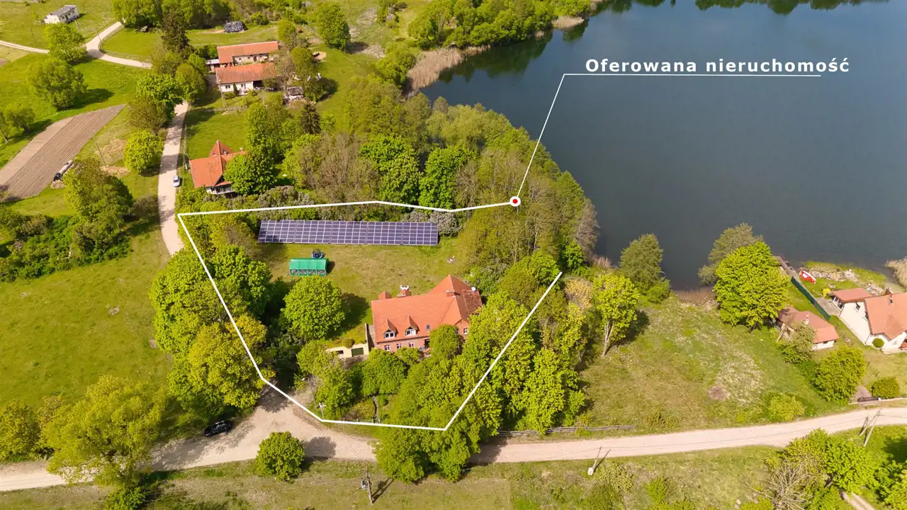 Działka o powierzchni 4 276 m² znajduje się nad jeziorem Kamionka, z bezpośrednim widokiem na wodę z okien budynku. Poranne kąpiele, wieczorne ogniska, przyjmowanie gości, biesiadowanie z przyjaciółmi – to styl życia, który oferujemy wraz z tą nieruchomością.