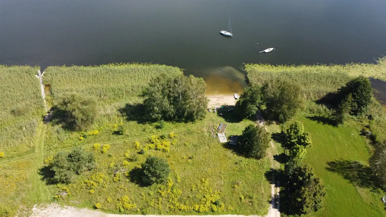 Jezioro Dadaj, o powierzchni około 1000 ha, oferuje aż 35 km linii brzegowej oraz 14 malowniczych wysp, co sprawia, że jest idealnym miejscem dla miłośników sportów wodnych i rekreacji. Jezioro to nie jest objęte strefą ciszy, co daje możliwość korzystania z silnikowych łodzi i innych form aktywności na wodzie. W odległości zaledwie 2 km od działek znajdują się restauracje, duży ośrodek szkolenia żeglarzy oraz wypożyczalnia sprzętu pływającego, dzięki czemu masz dostęp do licznych atrakcji i udogodnień.