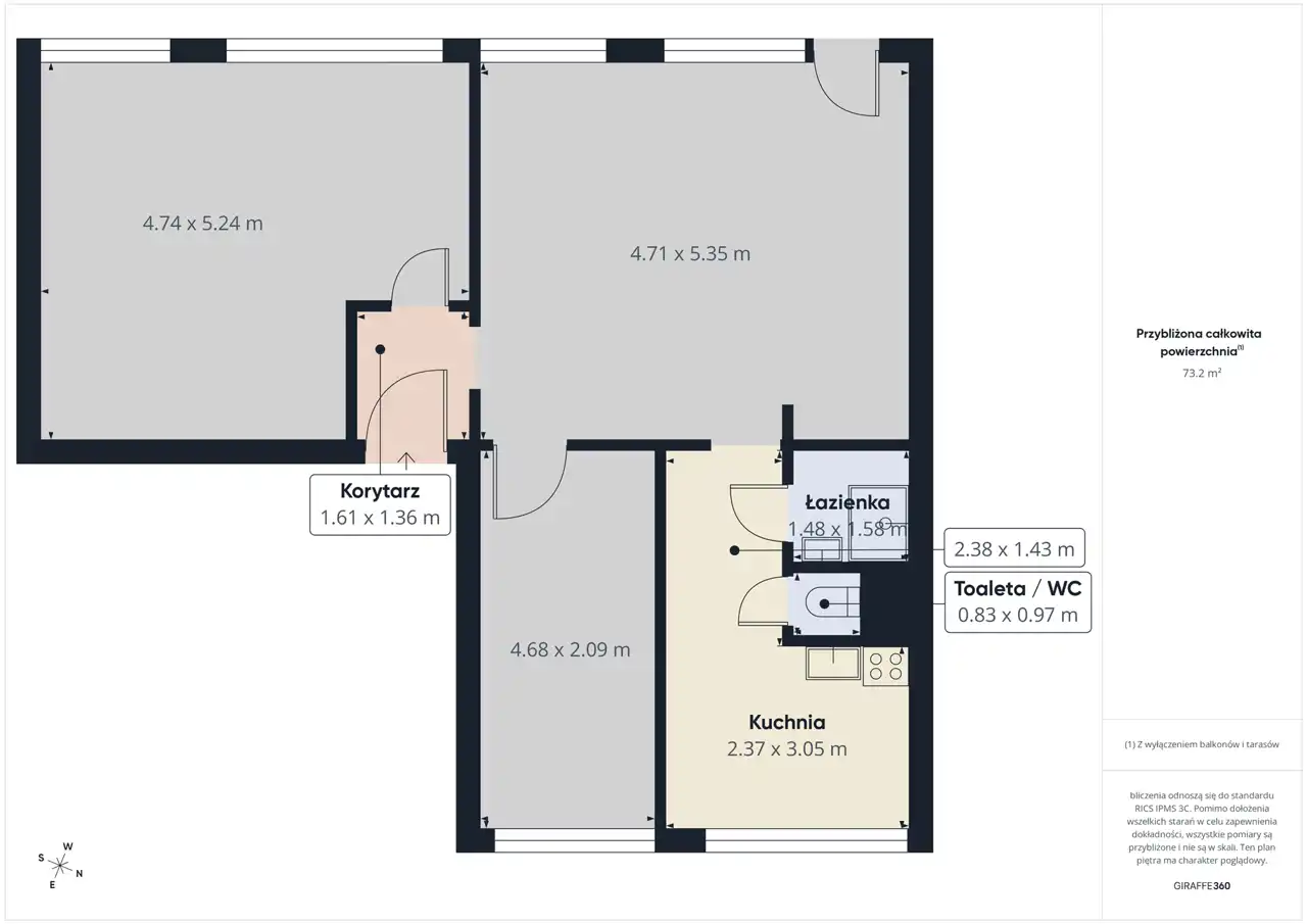 - Charakterystyka mieszkania 73.38 m2, 3 pokoje