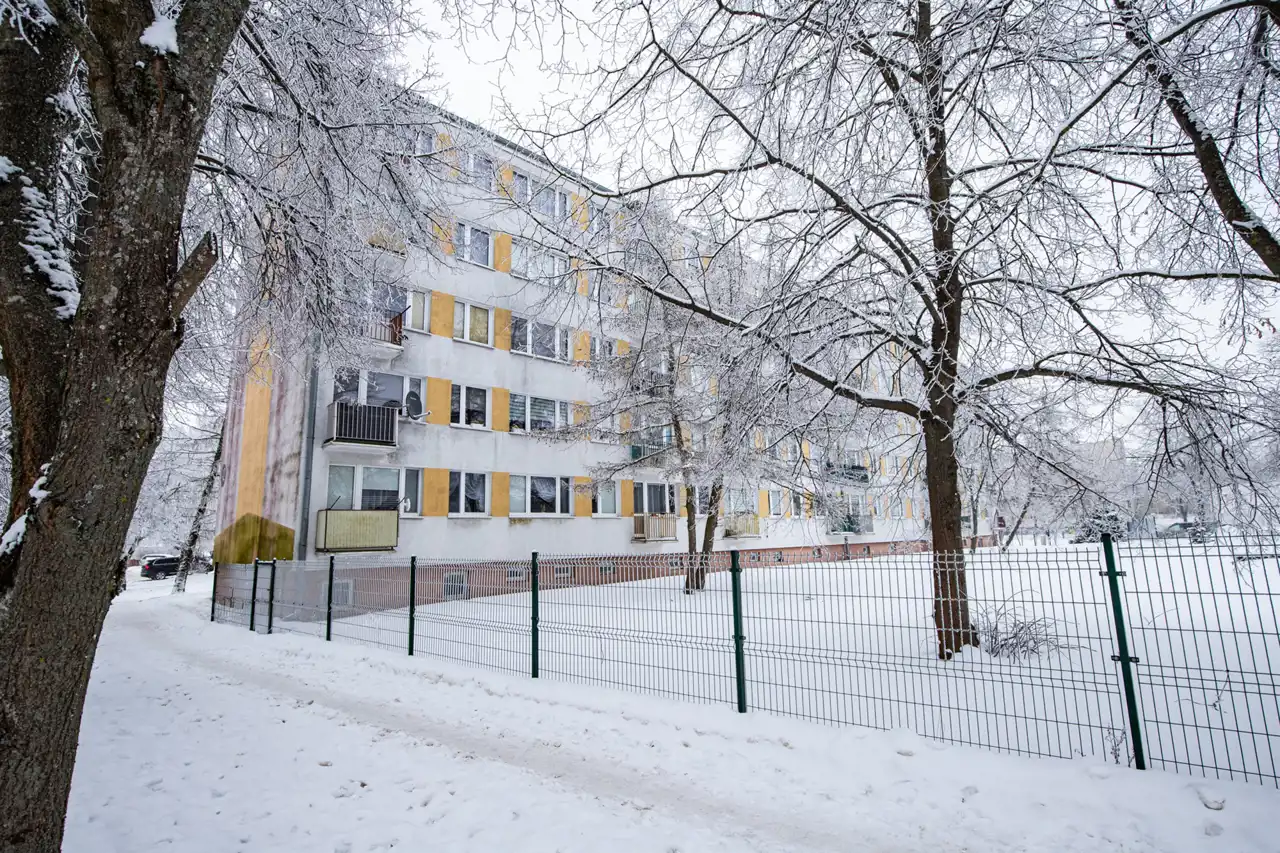 Budynek jest ocieplony i wyremontowany, przed blokiem sporo zieleni i przestrzeni.