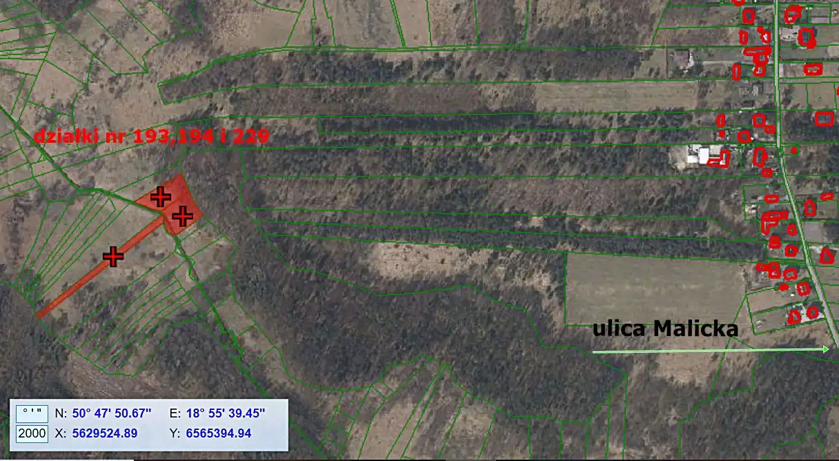 2. działka o numerze ewidencyjnym 193, 194 i 229 - oznaczone w Miejscowym Studium jako ZD - tereny przeznaczone pod zadrzewienie.