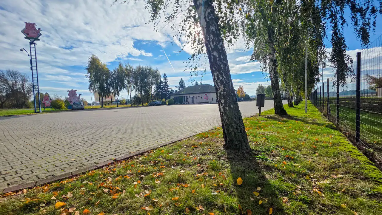 Wokół tereny zielone i spokojna zabudowa – idealne tło dla gastronomii, hotelu lub eventów.