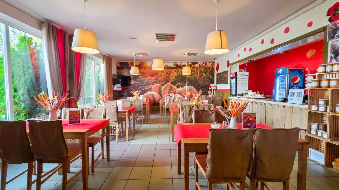 Doskonała ekspozycja, bezpośredni zjazd z głównej trasy i ogromny, utwardzony parking (ok. 2700 m²) sprawiają, że obiekt jest idealny dla podróżnych, kierowców i gości indywidualnych.