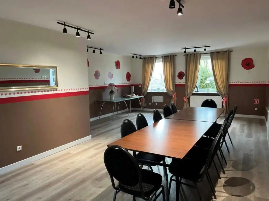 W budynku znajduje się oprócz pokoi hotelowych, sala bankietowa