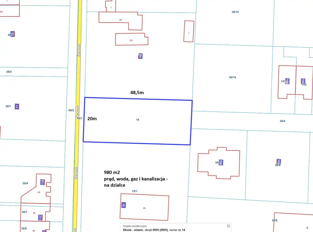 - Media Woda: na działce; Kanalizacja: na działce; Prąd: na działce; Gaz: na działce