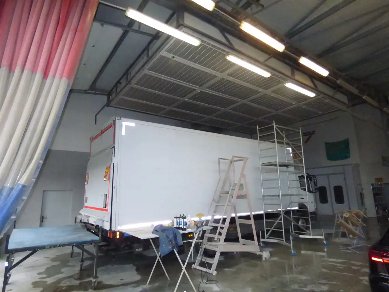W halach m.in. specjalistyczne stanowisko do powypadkowych remontów ram, powypadkowych remontów kabin, zabudów naczep, 200 metrowa strefa przygotowawcza lakierni z plenum filtracyjnym, 17-metrowa lakiernia główna oraz "mała" (7x5m) lakiernia pomocnicza.