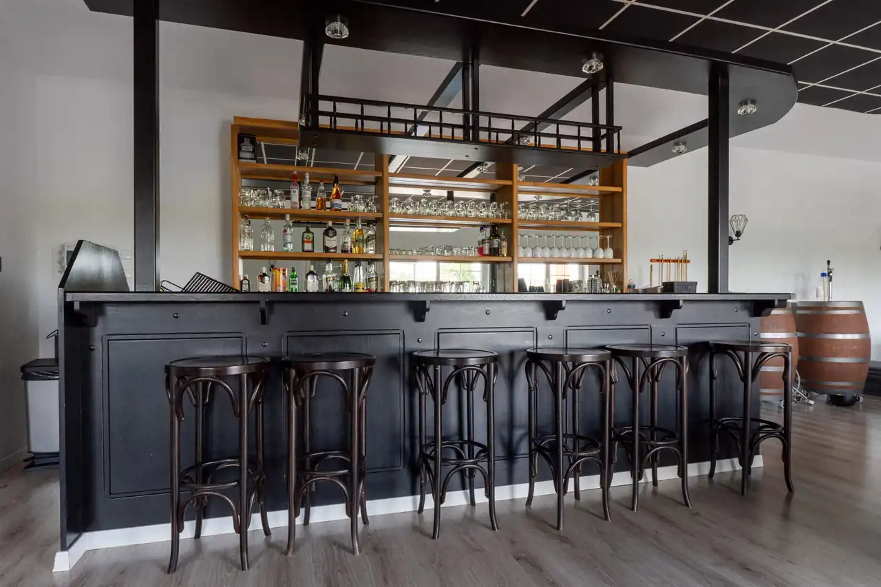 - przestronna sala i barem pełniąca również funkcję sali bilardowej z wc – ok. 85 m2 oraz dużym tarasem,