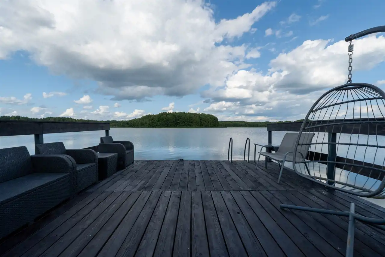 - Pomost nad jeziorem – miejsce spotkania z ciszą natury, idealne do porannej kawy, medytacji czy wędkowania.