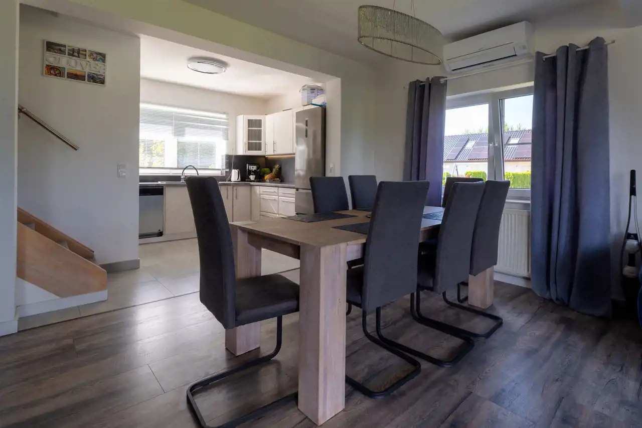 - salon połączony z jadalnią - wyposażony w klimatyzację oraz kominek z płaszczem wodnym, zapewniający nie tylko przytulną atmosferę, ale także dodatkowe źródło ogrzewania,
