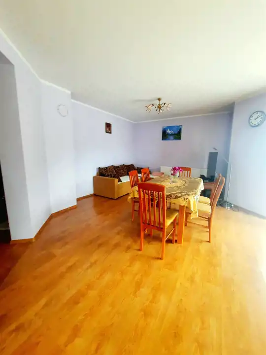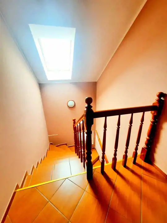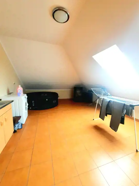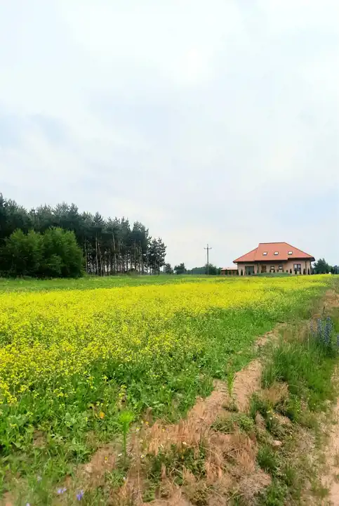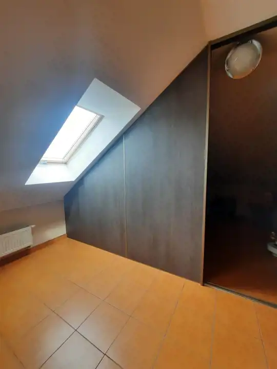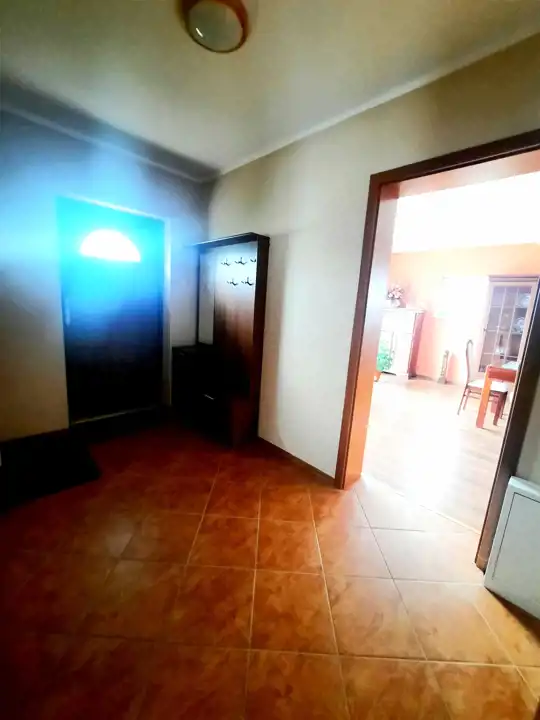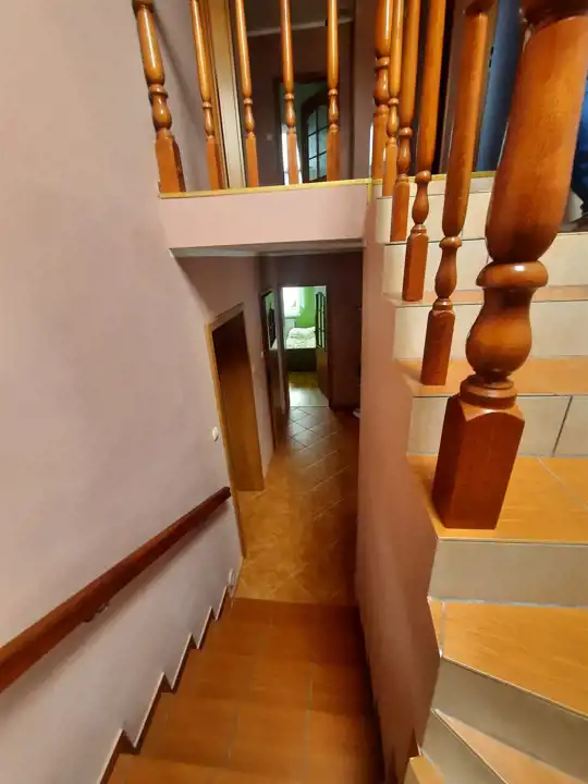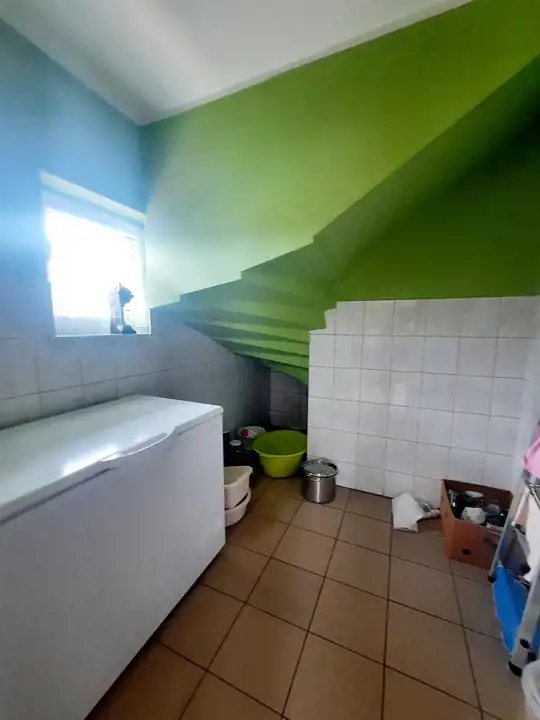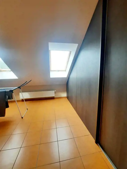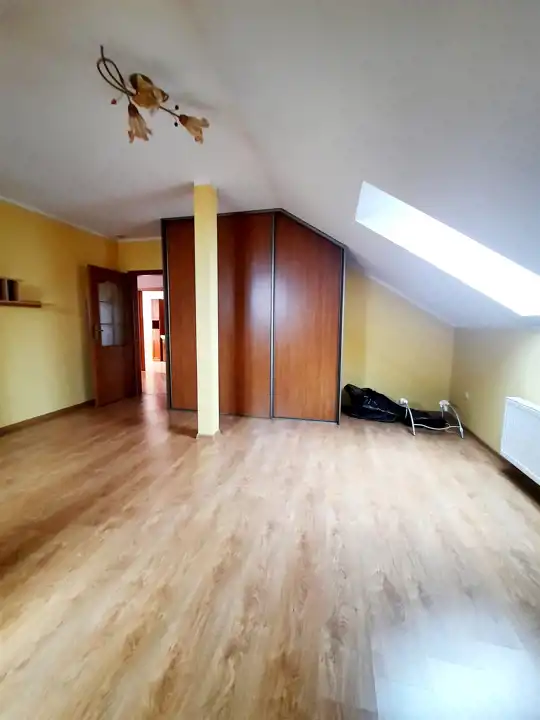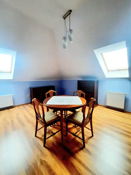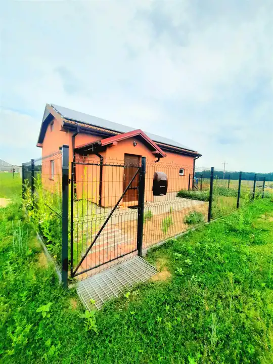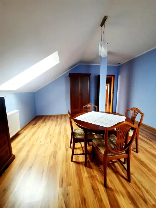 Budynek parterowy z użytkowym poddaszem o powierzchni całkowitej ok 150 m2. Parter składa się z: korytarza , bardzo przestronnej kuchni z jadalnią oraz salonem z wyjściem na duży taras z którego rozciąga się przepiękny widok na pola i lasy , 2 sypialni , przedpokoju ,kotłowni, łazienki z prysznicem oraz WC. Na poddaszu znajdują się 3 sypialnie , ogromna pralnia z suszarnią ( możliwość adaptacji na duża sypialnie bądz siłownię), łazienka z wanną oraz garderoba. Dom ogrzewany jest piecem miałowym oraz gazem , na dachu budynku gospodarczego zainstalowano penele fotowoltaiczne co zapewni Państwu bardzo niskie rachunki za energię elektryczną ( ok 35 zł/msc). w oknach zainstalowano automatyczne rolety antywłamaniowe.