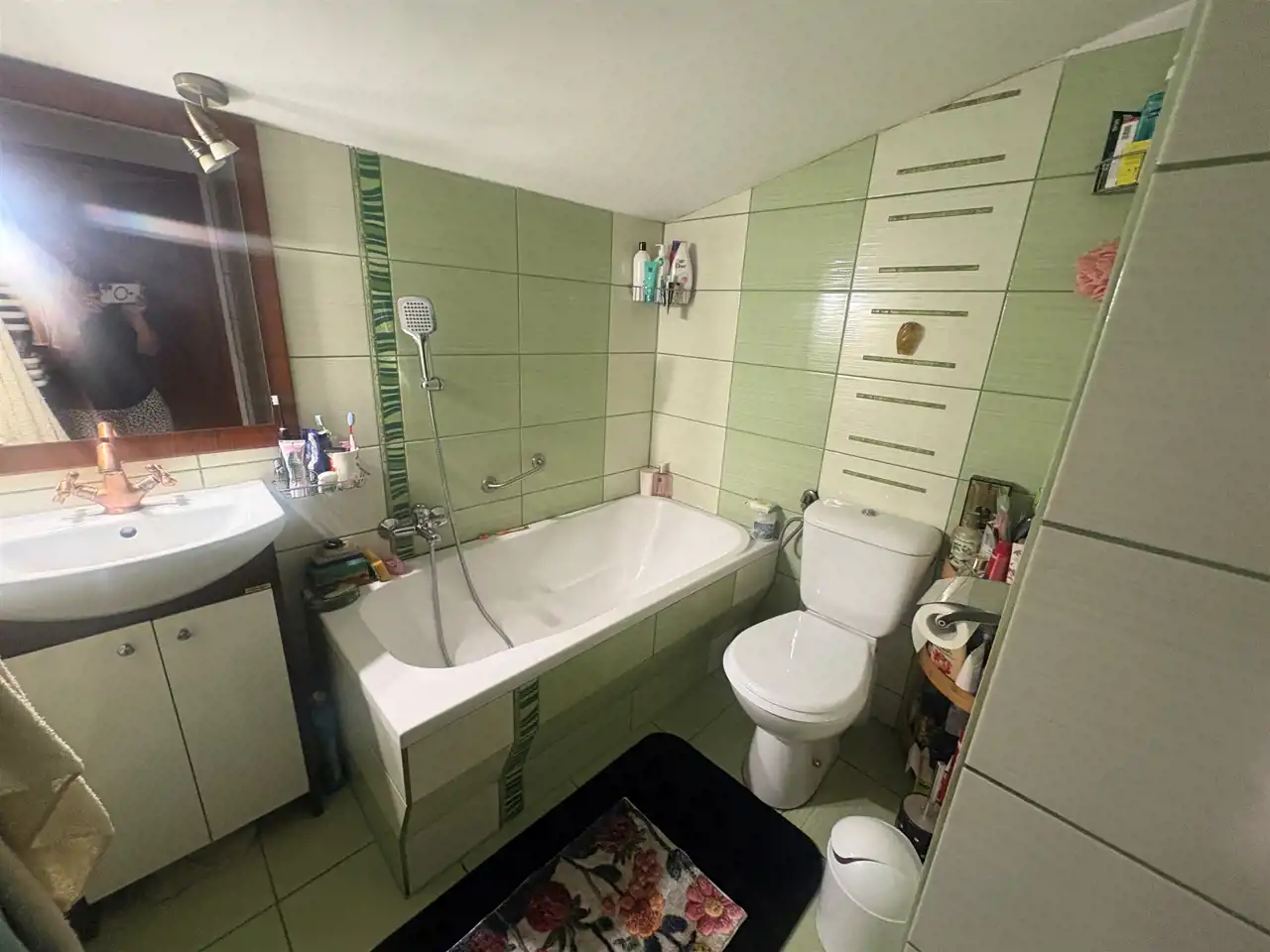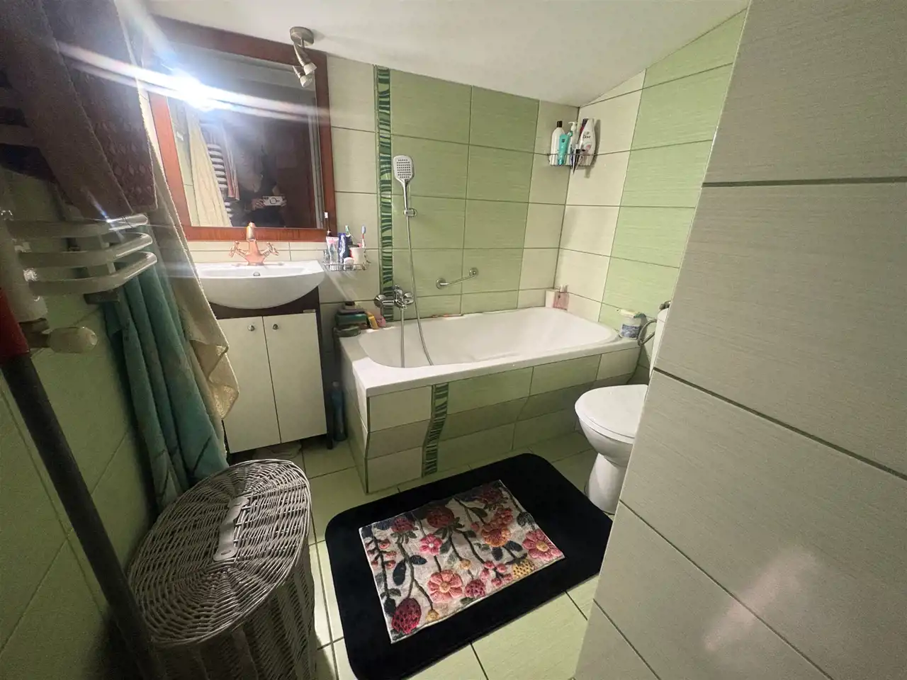 Łazienki: 2 (jedna przy dwóch pokojach, druga na niższym poziomie)