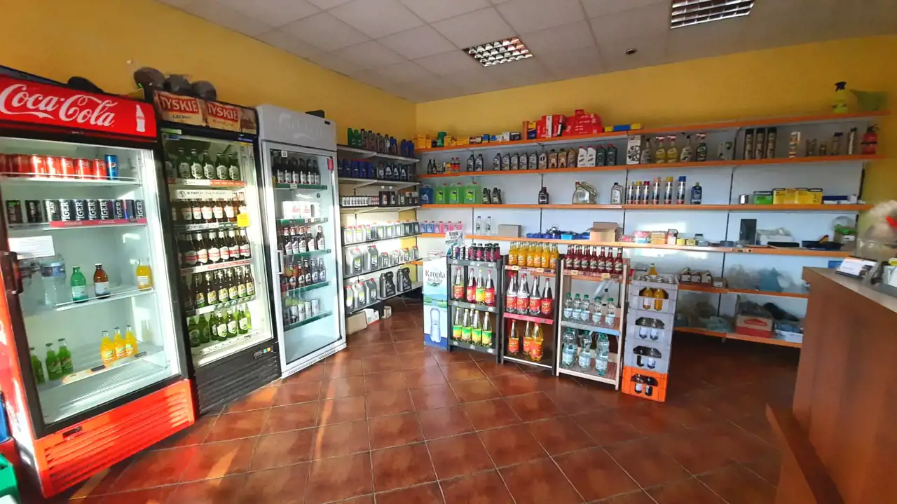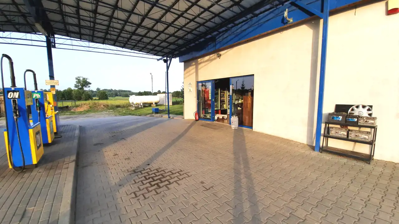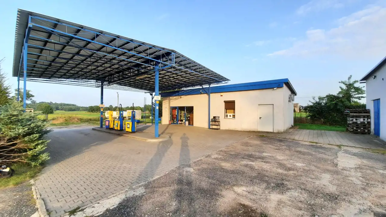 BIURO NIERUCHOMOŚCI Mercado oferuje Państwu na sprzedaż odnowiony w 2012 roku obiekt, obecnie funkcjonujący jako stacja paliw z wiatą i powierzchnią biurową wraz z grażami murowanymi, usytuowany na działce o powierzchni ok 2500 m2. Wyposażony w wszelkie potrzebne udogodnienia.