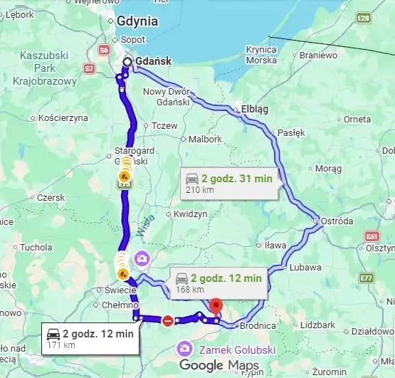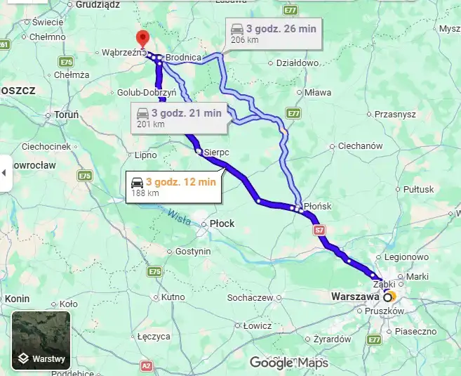 Dojazd do Brodnicy zajmuje około 12 minut.