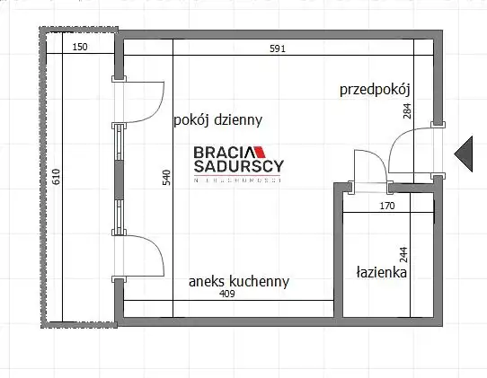 Pokoju dziennego z aneksem kuchennym i jadalnią – przestronny i dobrze doświetlony, z przestrzenią na stworzenie wygodnej strefy wypoczynkowej oraz jadalnej.