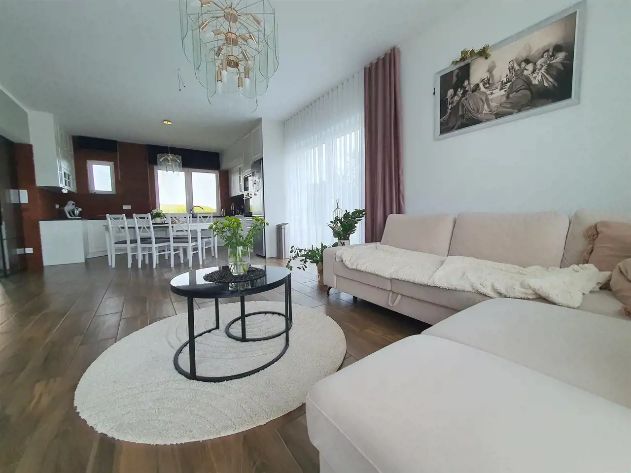 - duża przestrzeń dzienna: kuchnia z jadalnią otwarta na salon – z wyjściem na duży taras