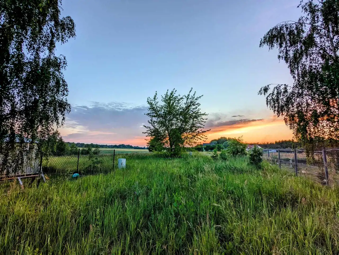 Jest to działka w ostatniej linii zabudowy, tylko drzewa, pola i słońce przed nami :)