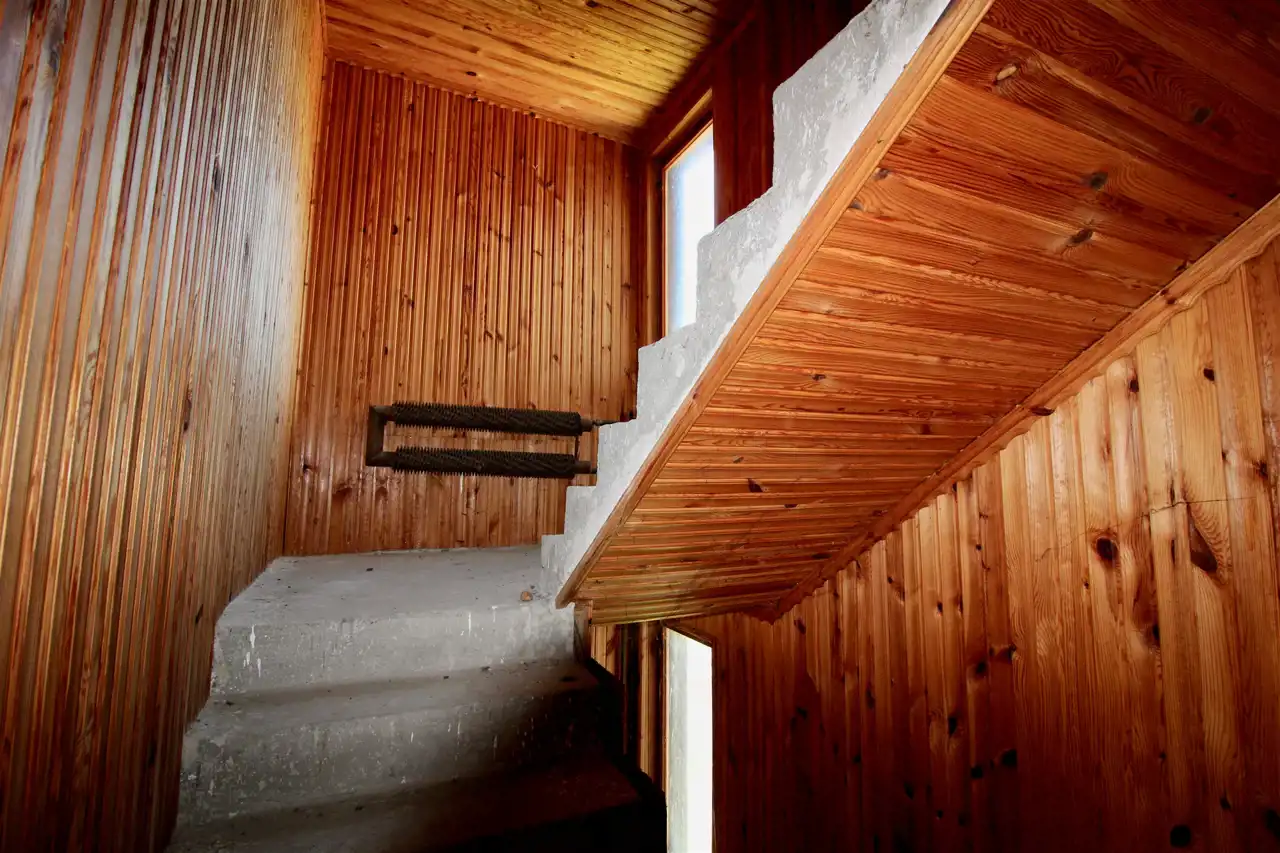Dół budynku stanowią sutereny z 3 pomieszczeniami gospodarczymi i kotłownią oraz garażem.
